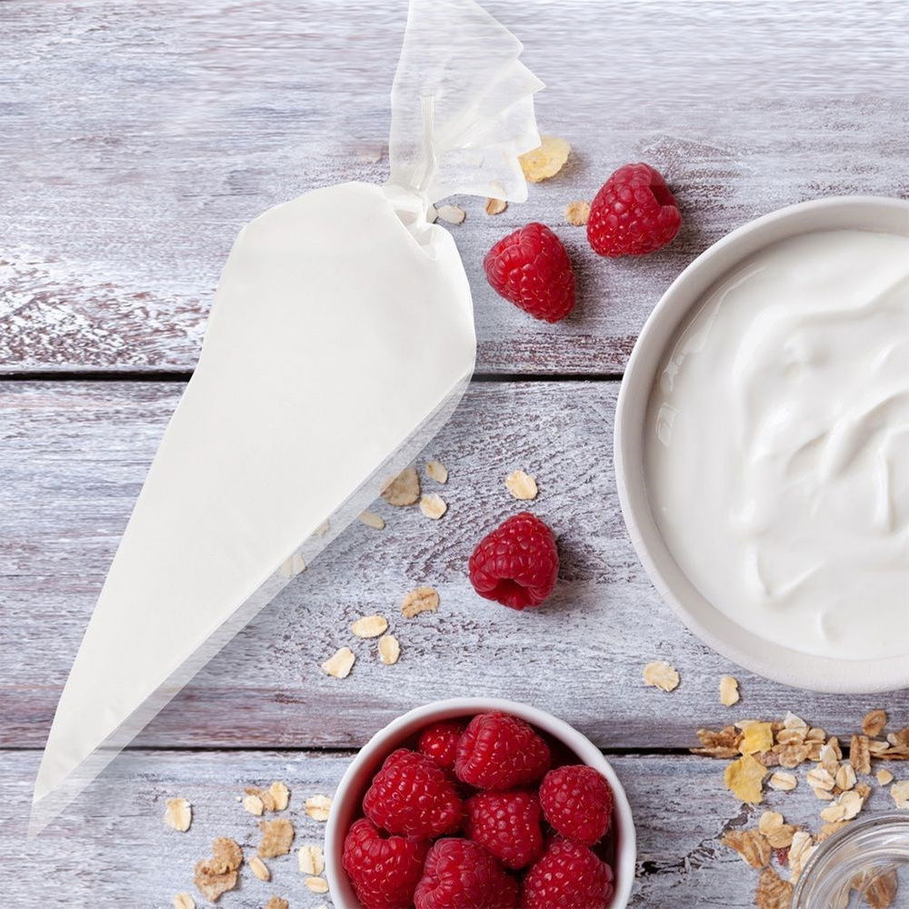 FUNKCJONALNY - Dekorowanie ciast z użyciem rękawa cukierniczego jest bardzo wygodne. Przez odcięcie końcówki worka ustala się jak duży ma być otwór.