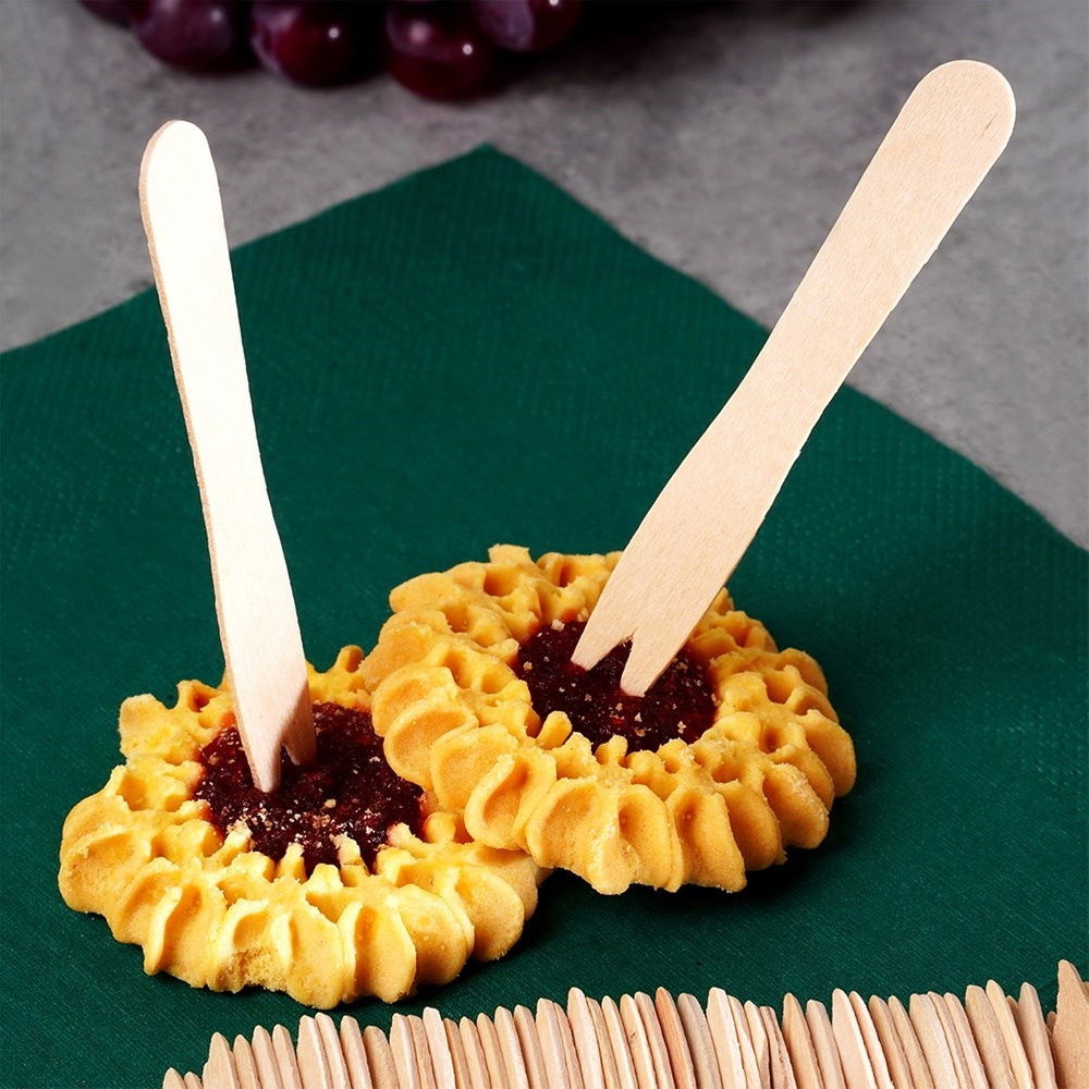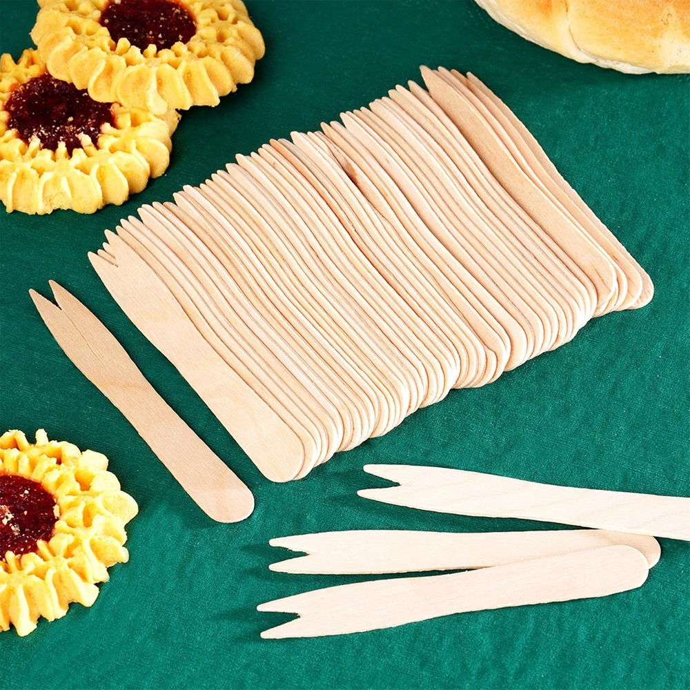 50x Widelczyki Drewniane Widelce do Przekąsek Przystawek Frytek 8,5 cm