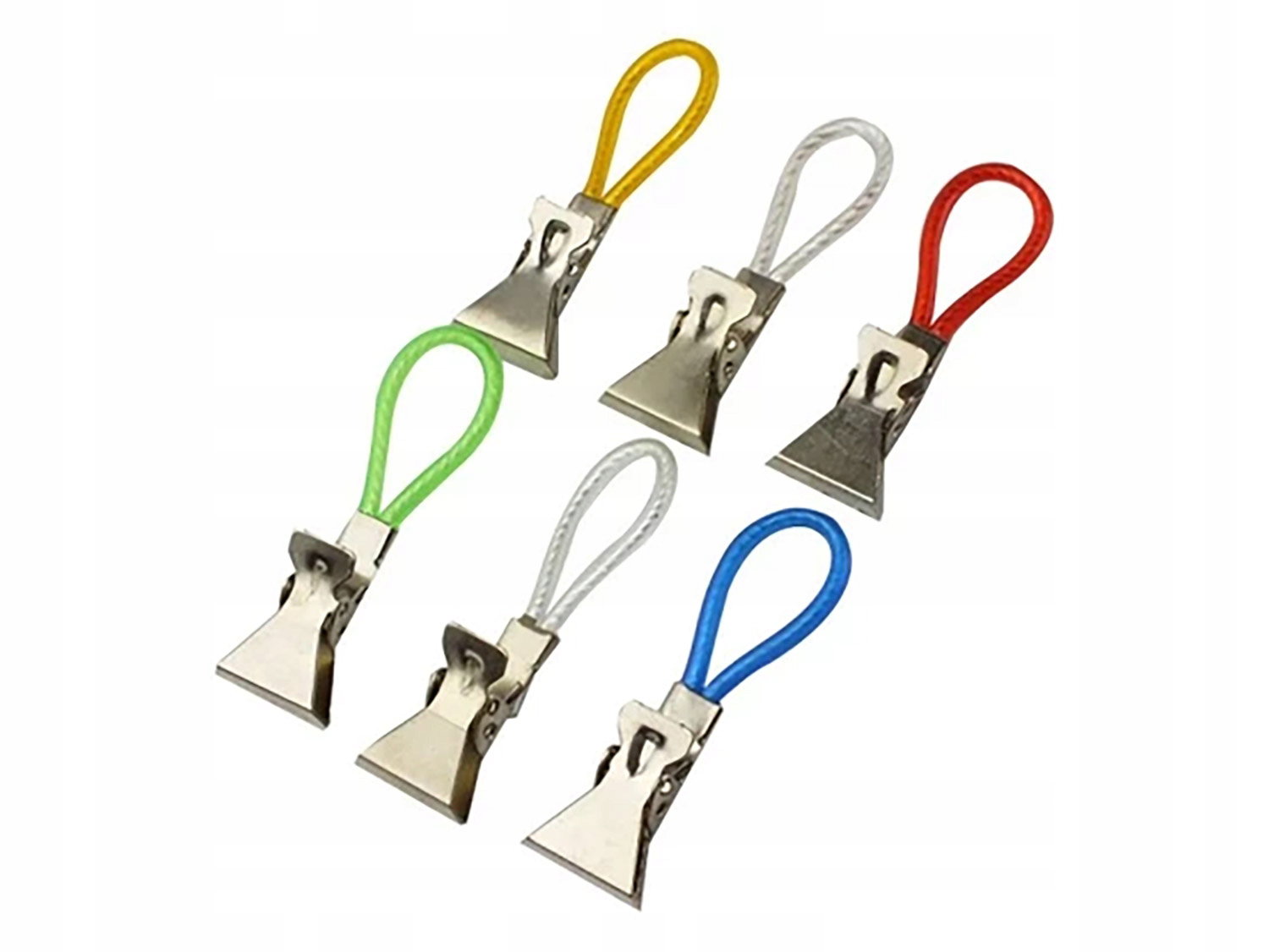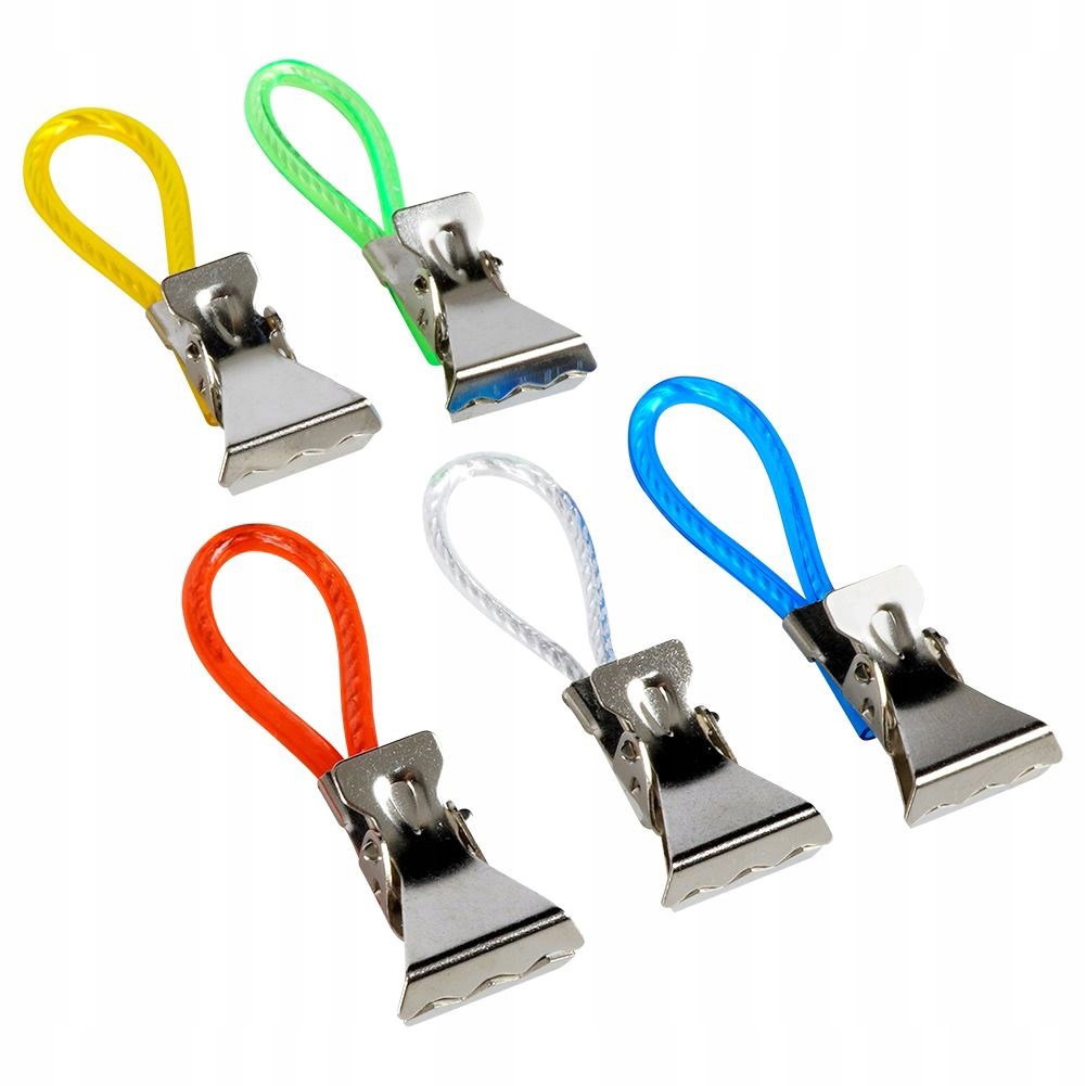 Zestaw pięciu klipsów na ręczniki oraz ściereczki. Wymiary klipsów to 5 x 0.5 x 1,5 cm. Każdy z wieszaków jest w innym kolorze. Znakomity gadżet do każdej łazienki i kuchni. Dzięki nim bez problemu zawiesimy ściereczki lub ręczniki, które na posiadają uszka do zawieszenia. Wytrzymały klips zapewni odpowiednie trzymanie.