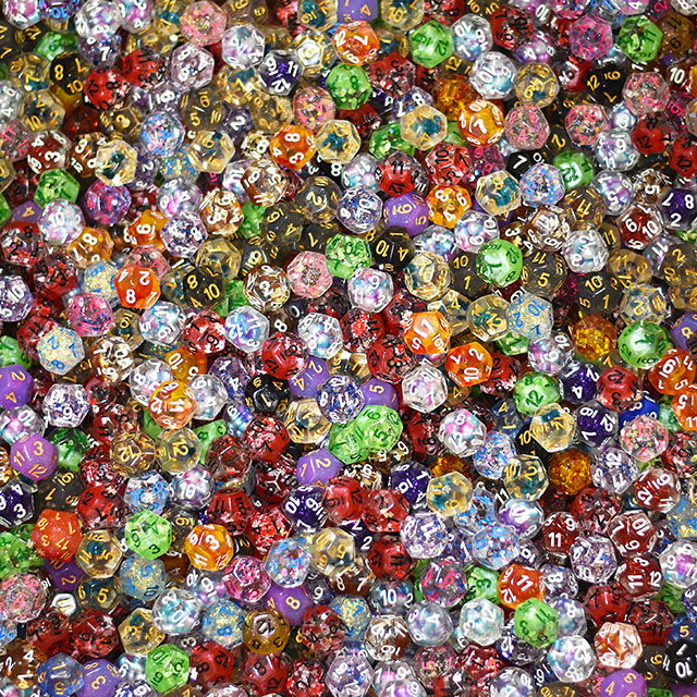 Komplet pięciu tajemniczych, wybranych przez nasze koło fortuny, akrylowych dwunastościennych kości RPG będących podstawą każdej sesji.
