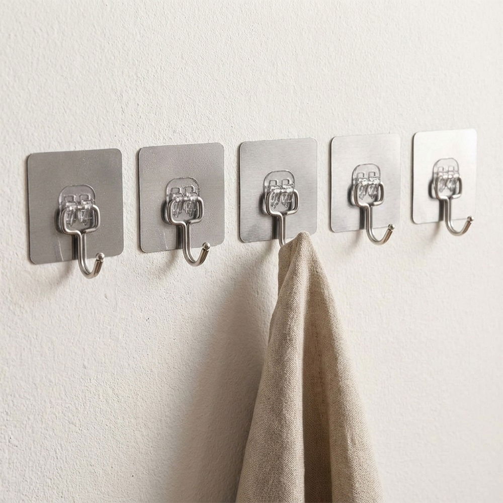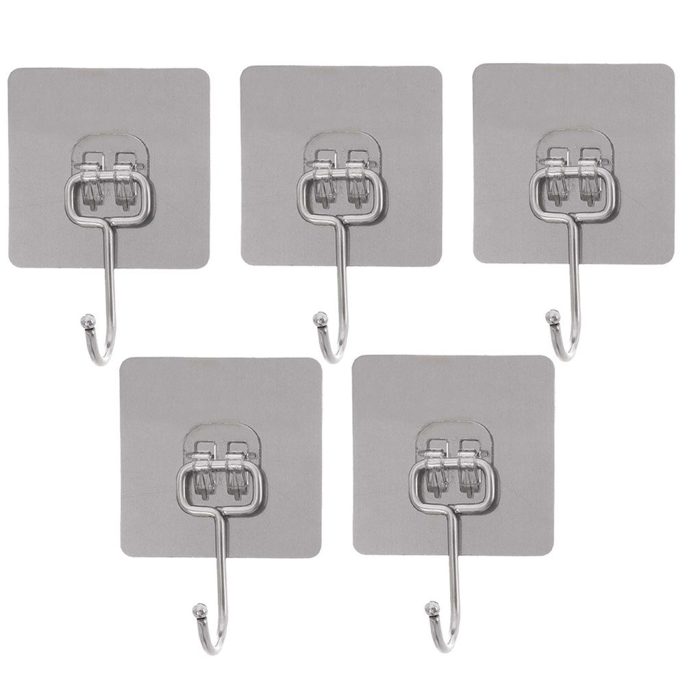 Zestaw 5 szt. haczyków samoprzylepnych - Haczyki samoprzylepne o wszechstronnym zastosowaniu. Mocno trzymają się powierzchni i nie odklejają się. Każdy haczyk ma kwadratowy kształt i wymiary zewnętrzne 6,5 x 3,5 x 9,5 cm.