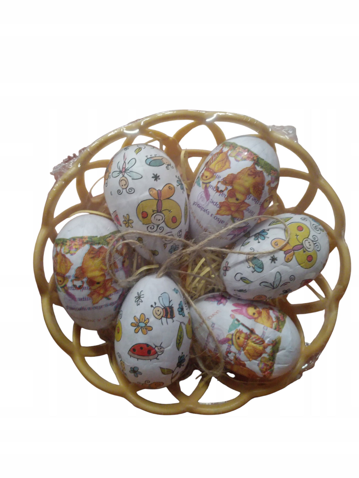 Zestaw 6 jajek wielkanocnych w koszyczku – dekoracja świąteczna