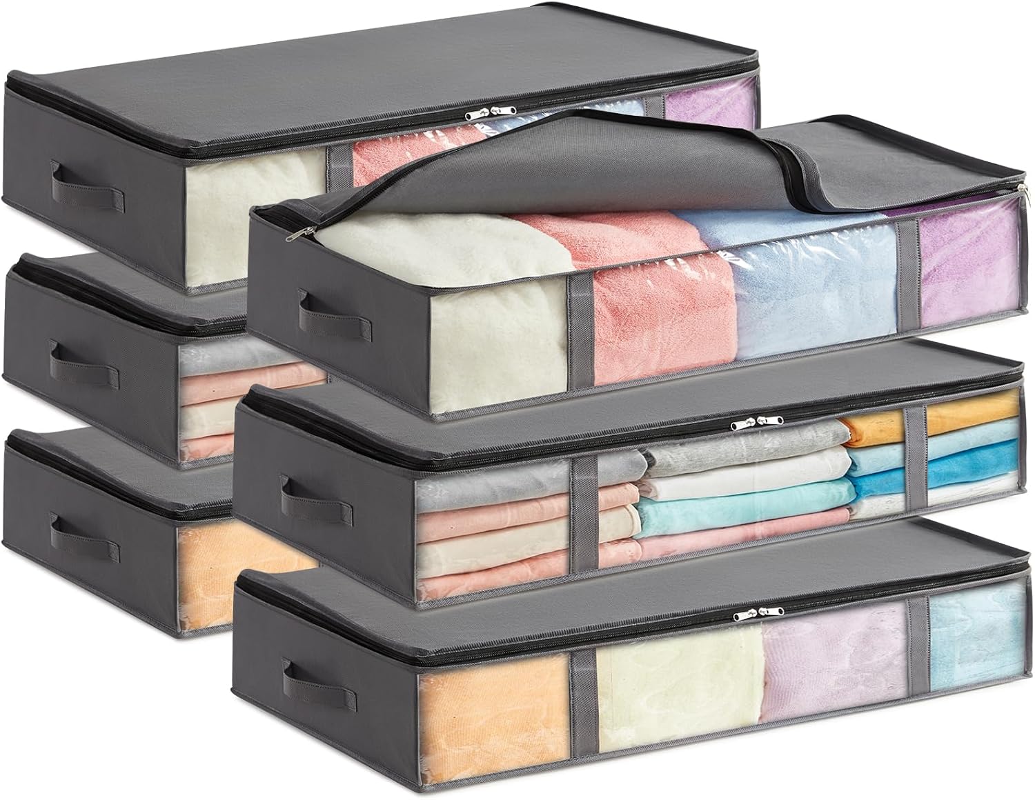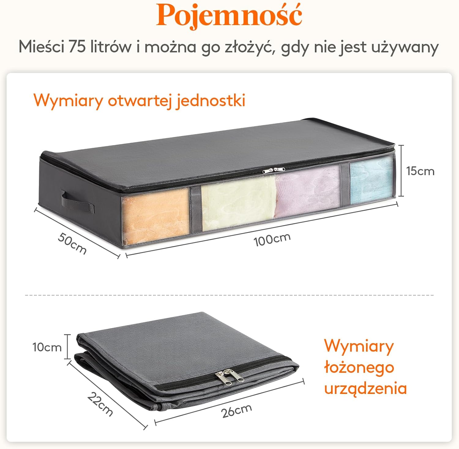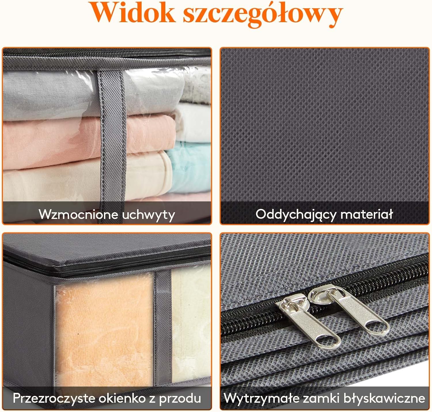 6 SZT ORGANIZER PUDEŁKO NA UBRANIA POŚCIEL SZARY POD ŁÓŻKO DO SZAFY - 75L