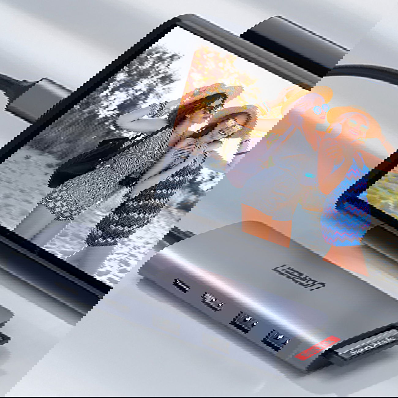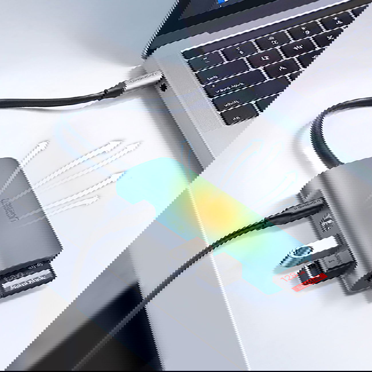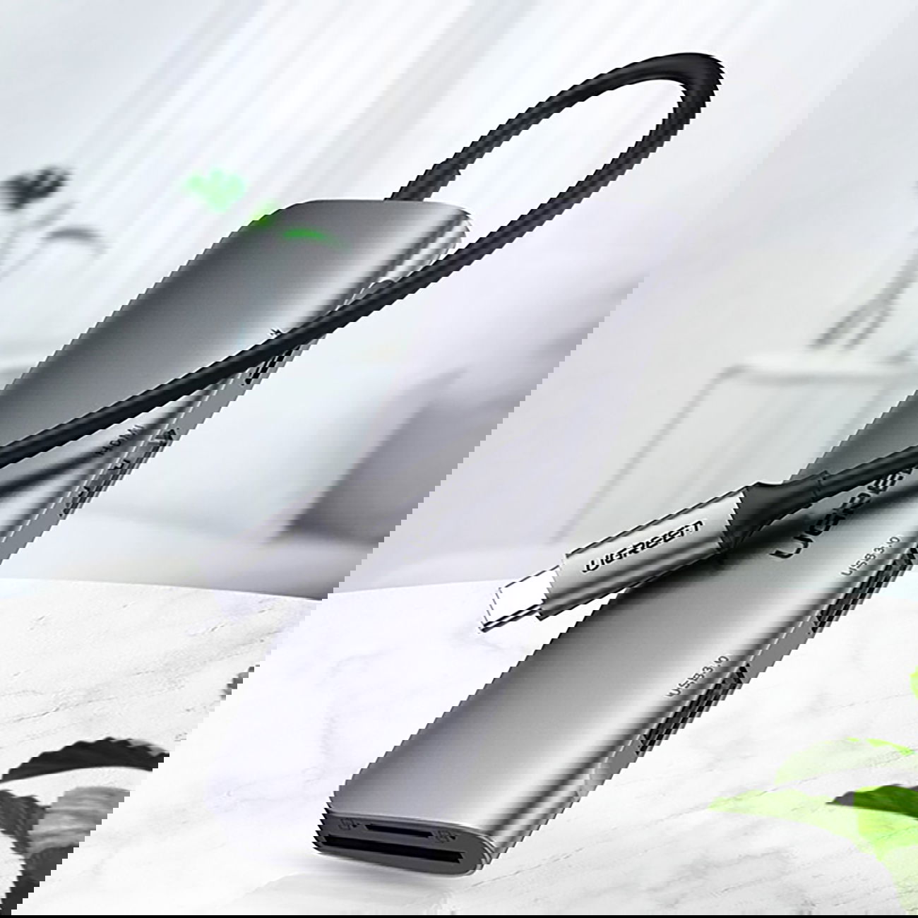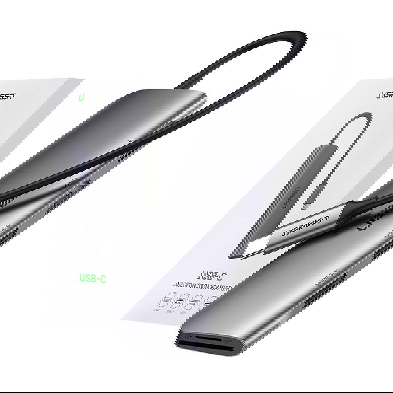 Kod produktu: 1027605Adapter Ugreen CM195 to idealne rozwiązanie dla każdego, kto chce rozszerzyć możliwości swojego laptopa czy komputera z portem USB-C. Ten zaawansowany adapter pozwala na podłączenie wielu urządzeń jednocześnie, dzięki czemu praca staje się bardziej efektywna. Wyposażony w złącza 2x USB-A 3.0, USB-C, HDMI oraz czytniki kart SD i TF zapewnia błyskawiczny transfer danych i doskonałą jakość obrazu. Dzięki kompaktowej konstrukcji i eleganckiej aluminiowej obudowie adapter jest nie tylko funkcjonalny, ale również stylowy i trwały.Rozszerzenie możliwości pracyAdapter Ugreen CM195 pozwala na podłączenie wielu urządzeń jednocześnie, co znacznie zwiększa efektywność pracy. Dzięki portom 2 x USB-A 3.0, USB-C, HDMI oraz czytnikom kart SD i TF możesz łatwo przesyłać dane, podłączać urządzenia peryferyjne i cieszyć się doskonałą jakością obrazu. To idealne rozwiązanie dla profesjonalistów, którzy potrzebują wielu portów w jednym, kompaktowym urządzeniu.Szybki transfer danychDzięki standardowi USB 3.0 adapter Ugreen CM195 zapewnia błyskawiczny transfer danych z prędkością do 5 Gbps. Kompatybilność wsteczna z USB 2.0/1.1 sprawia, że możesz używać go z szeroką gamą urządzeń, nie martwiąc się o różnice w standardach. To doskonały wybór dla osób, które potrzebują szybko przesyłać duże pliki.Niezrównana jakość obrazuAdapter obsługuje rozdzielczość do 4K przy 30Hz, co zapewnia krystalicznie czysty obraz. Wyposażony w HDMI 2.0, HDCP 2.2, HDR10 oraz 3D gwarantuje doskonałe wrażenia wizualne, niezależnie od tego, czy oglądasz filmy, prezentacje czy grasz w gry. Dzięki temu, każda chwila spędzona przed ekranem staje się przyjemnością.Wszechstronne wsparcie dla kart pamięciUgreen CM195 umożliwia jednoczesne korzystanie z kart SD i TF, co jest niezwykle wygodne dla fotografów i osób pracujących z dużą ilością danych. Prędkość transferu wynosząca około 90 Mb/s pozwala na szybkie przenoszenie zdjęć, filmów i innych plików, co znacznie ułatwia codzienną pracę.Zasilanie i ładowanie urządzeńPort zasilania USB-C PD o mocy 100W sprawia, że adapter Ugreen CM195 może jednocześnie zasilać i ładować urządzenia podczas korzystania z niego. To niezwykle praktyczne rozwiązanie, które pozwala na nieprzerwaną pracę bez obaw o wyczerpanie baterii. Idealne dla osób, które potrzebują wydajnego narzędzia do pracy mobilnej.Najważniejsze cechy:
