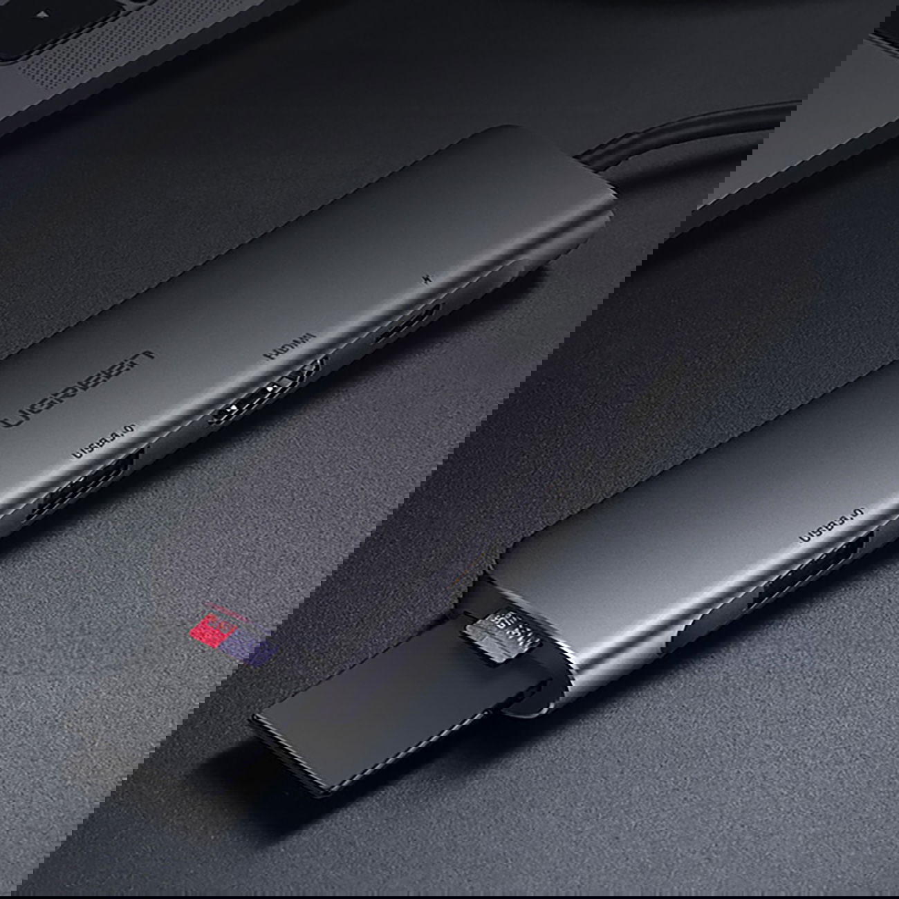 - - Umożliwia podłączenie sześciu urządzeń jednocześnie. Posiada 2 porty USB-A 3.0, USB-C, HDMI oraz czytniki kart SD i TF.