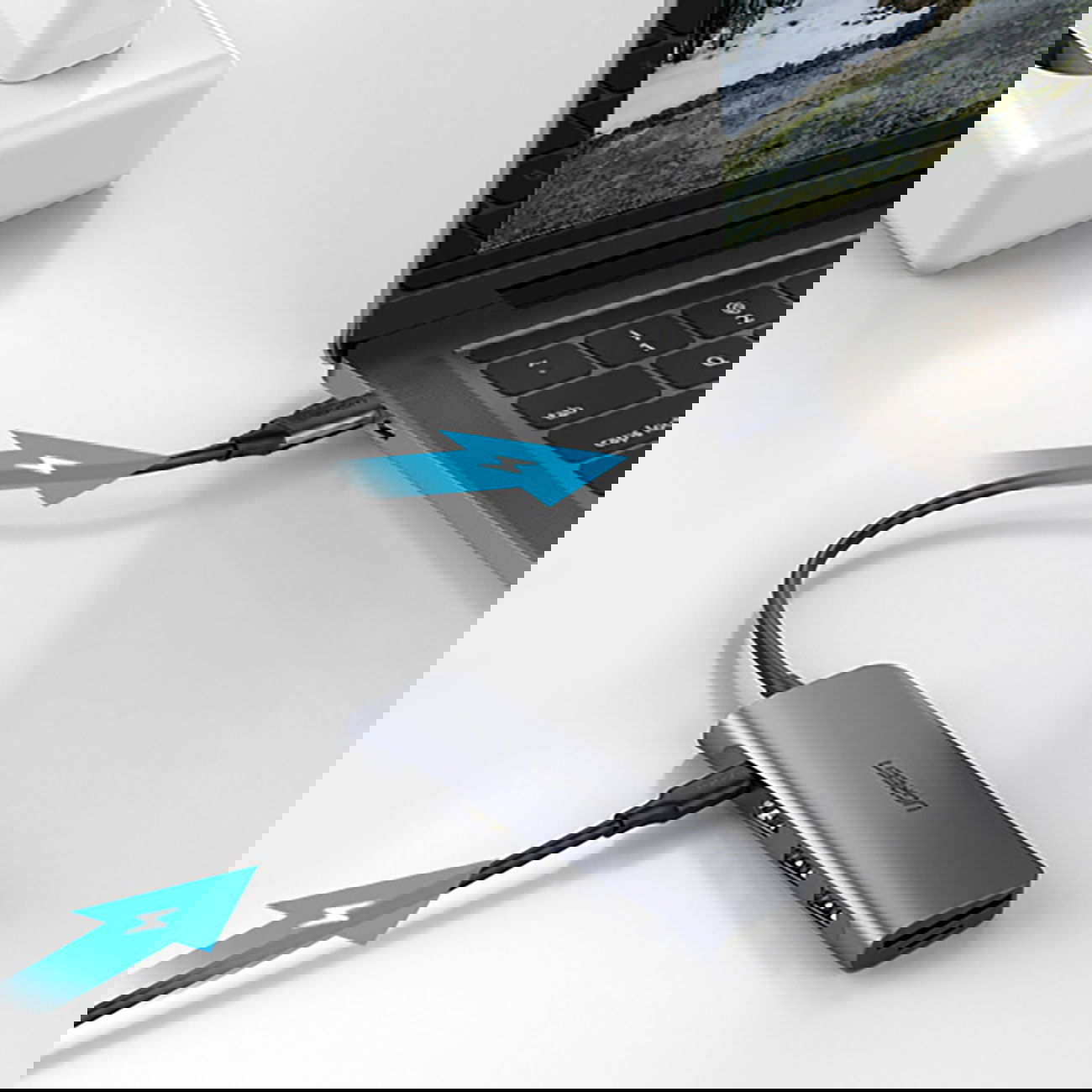 - - Umożliwia ładowanie urządzeń podczas korzystania z adaptera. Posiada port zasilania USB-C PD o mocy 100W.