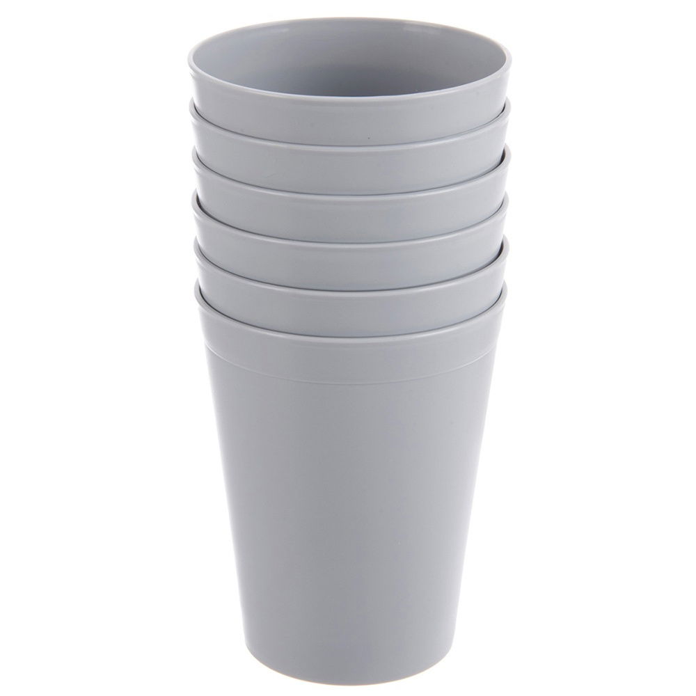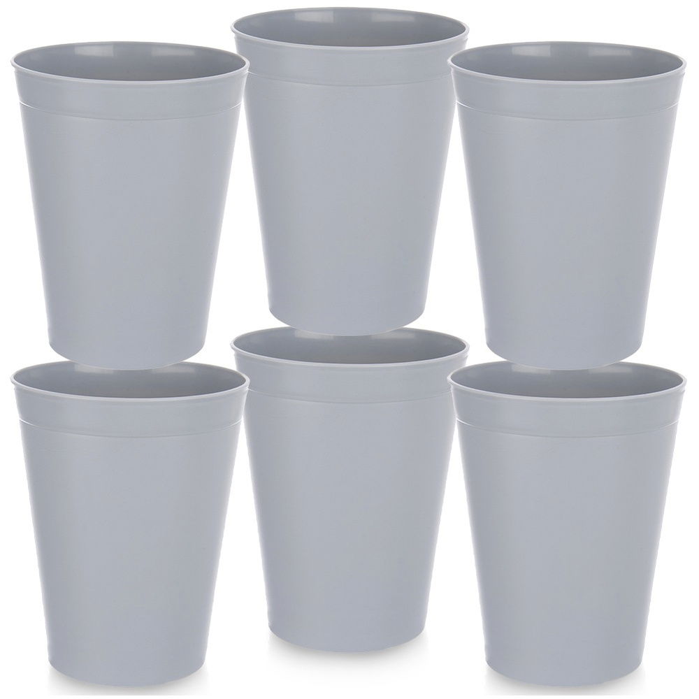 Zestaw 6 plastikowych kubków - Praktyczny zestaw sześciu lekkich, wytrzymałych kubków idealnych do napojów zimnych i gorących. Doskonałe do codziennego użytku w domu, ogrodzie i podczas wyjazdów. Pojemność kubka wynosi 300 ml, a jego wymiary to 8 x 10 cm. Kubki z serii Sandy.