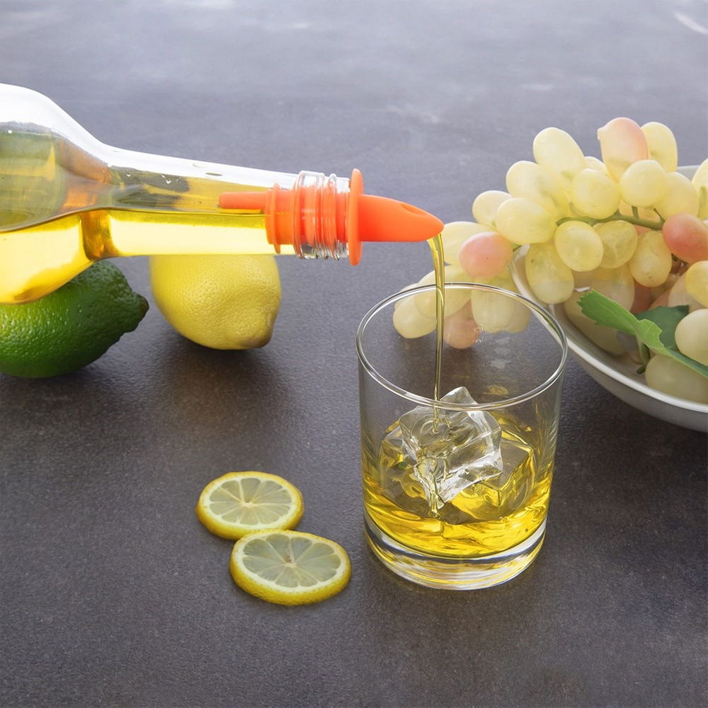 Elastyczne tworzywo - Wykonane w całości z termoplastycznego tworzywa w kolorze zielonym i pomarańczowym. Nalewaki są lekko elastyczne, dzięki czemu łatwo dopasowują się do różnych rozmiarów szyjek butelek, co czyni je idealnymi do użytku z oliwą, octem, syropami czy alkoholem.