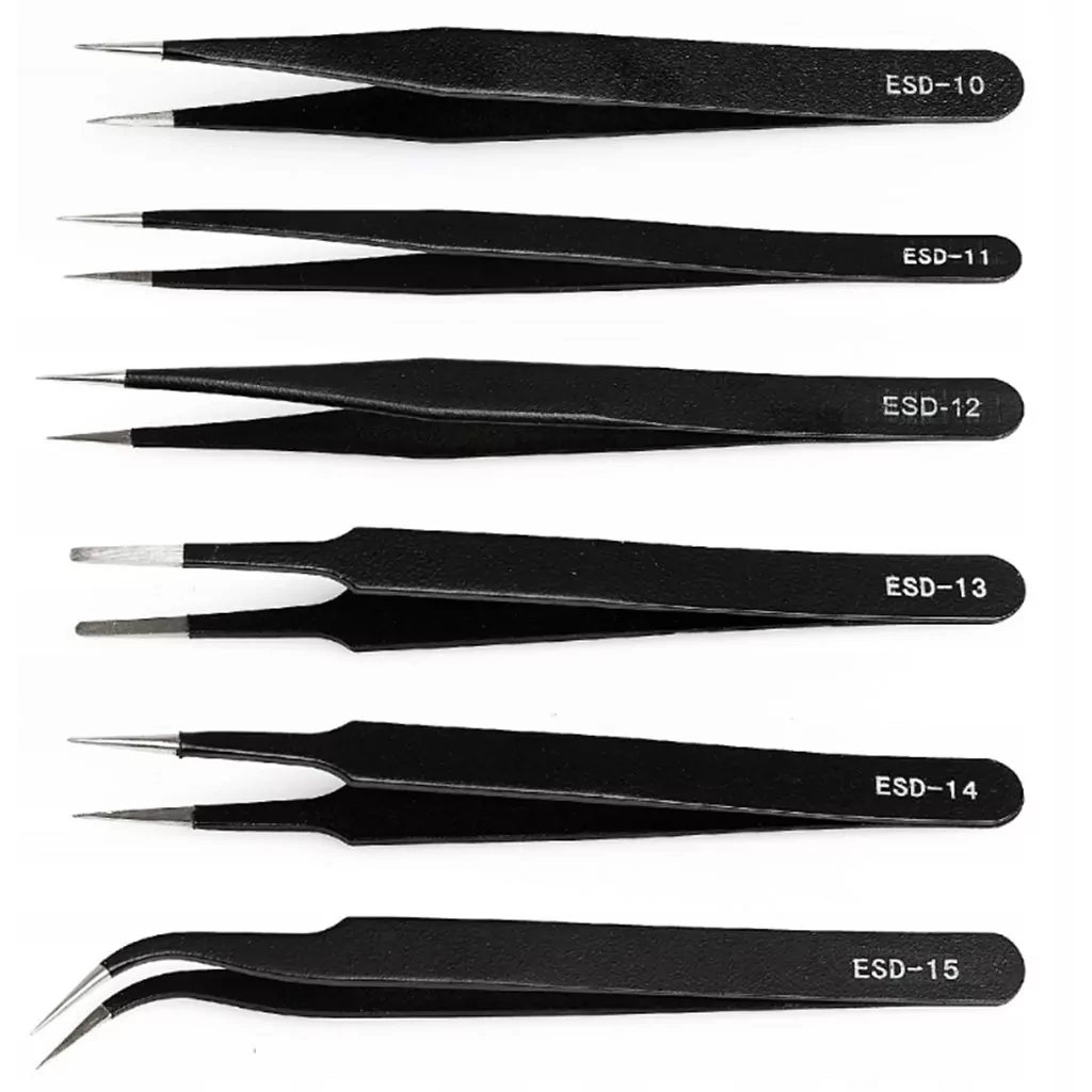 6x PĘSETA ZESTAW METALOWYCH PĘSET ESD 6SZT PINCETA PĘSETY