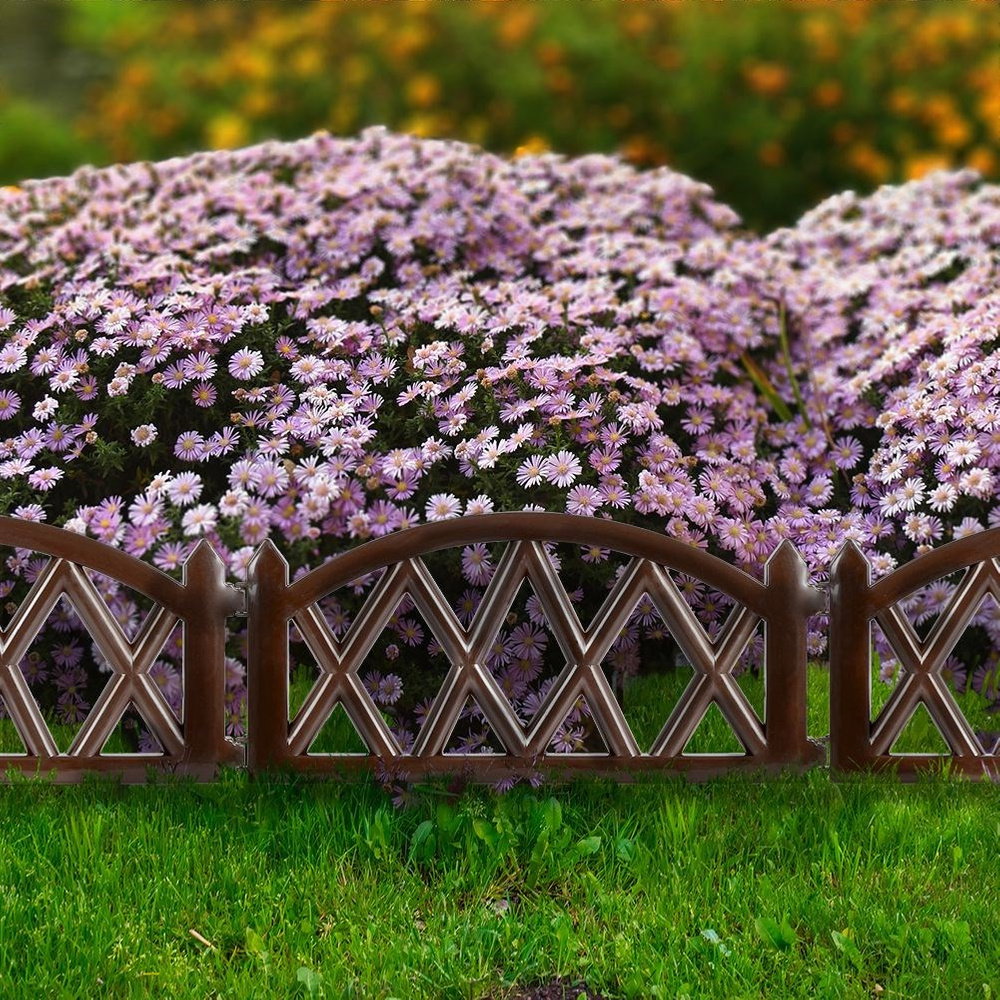 Zestaw składający się z 6 sztuk palisady ogrodowej o łącznej długości po złożeniu 300 cm. Każdy płotek ma wymiary 50 x 30 cm. Niezwykle solidnie wykonany z wysokiej jakości tworzywa w brązowym kolorze. Stanowi efektowną i praktyczną ozdobę w ogrodzie. Dekoracyjny płotek ogrodowy będzie wyjątkowym obrzeżem dla roślin w ogrodzie. Odporny na warunki atmosferyczne.