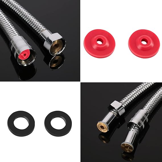 Łatwy montaż: wystarczy usunąć starą uszczelkę z węża prysznicowego i zamontować wybrany ogranicznik przepływu z czarną uszczelką.