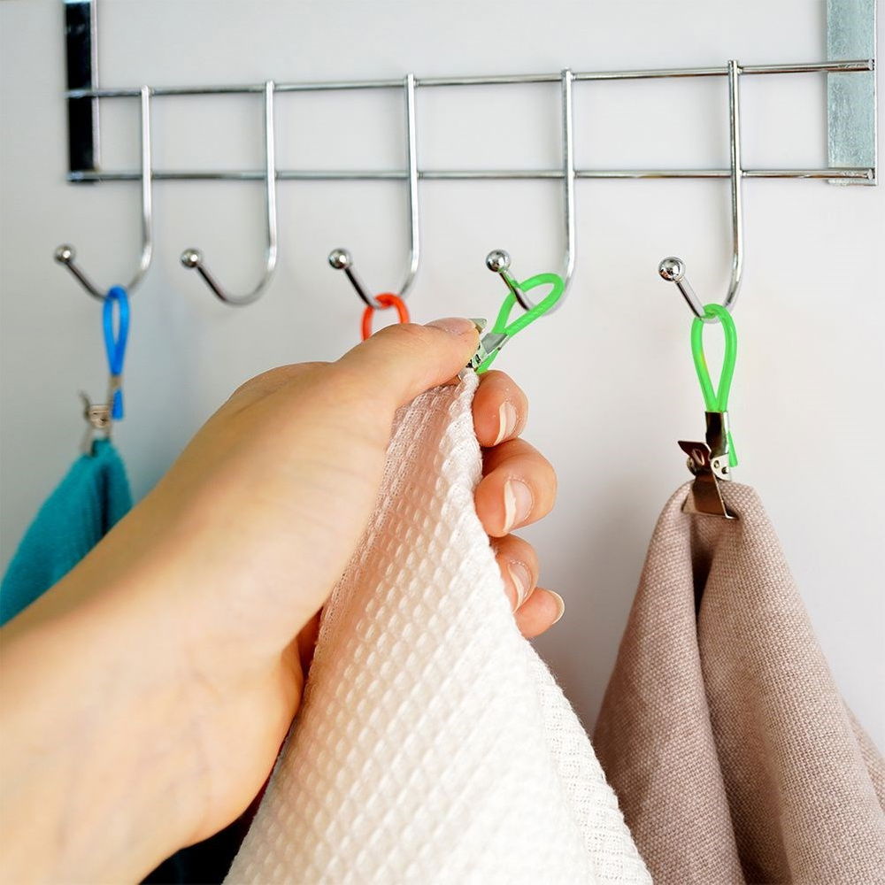 UNIWERSALNE - Klipsy wykorzystamy zarówno w łazience np. do odwieszania ręczników, jak również w kuchni do zawieszenia ręczniczków kuchennych oraz ścierek.