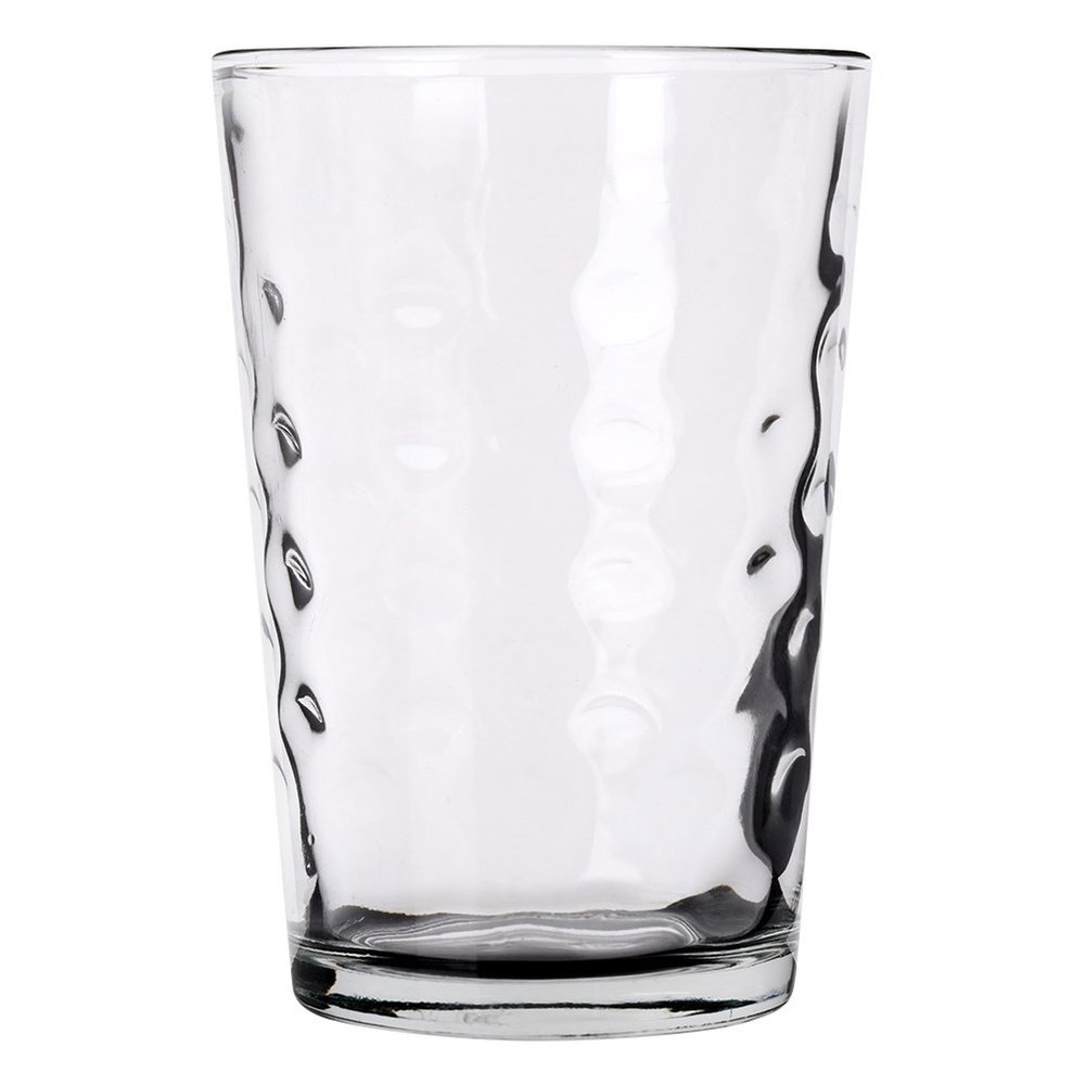 SZKLANE - Wykonane z grubego szkła w przezroczystym kolorze. Posiadają ozdobne wytłoczenie, dzięki czemu prezentują się niezwykle efektownie.
