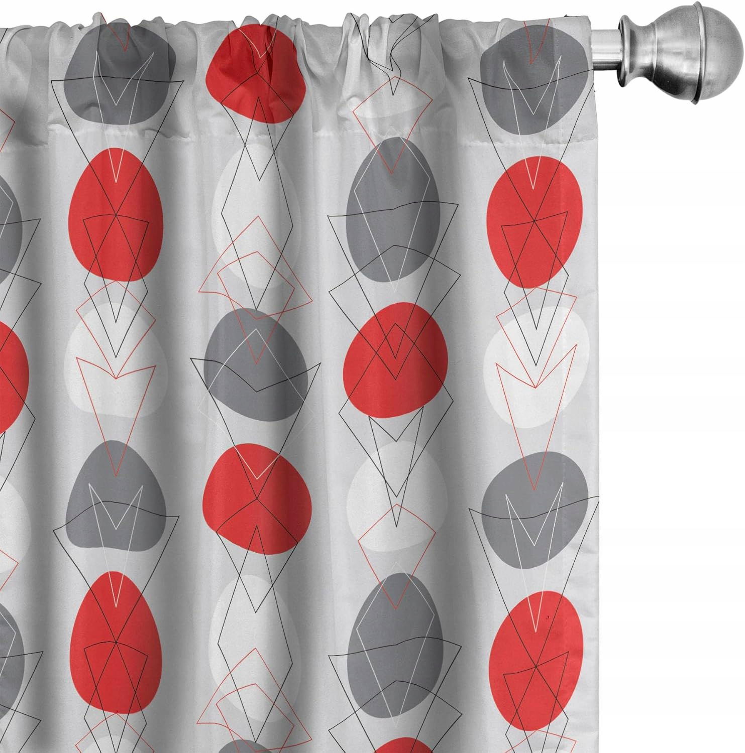 ABAKUHAUS zasłony geometryczne 2-panelowy zestaw 150×225 cm szary/czerwony