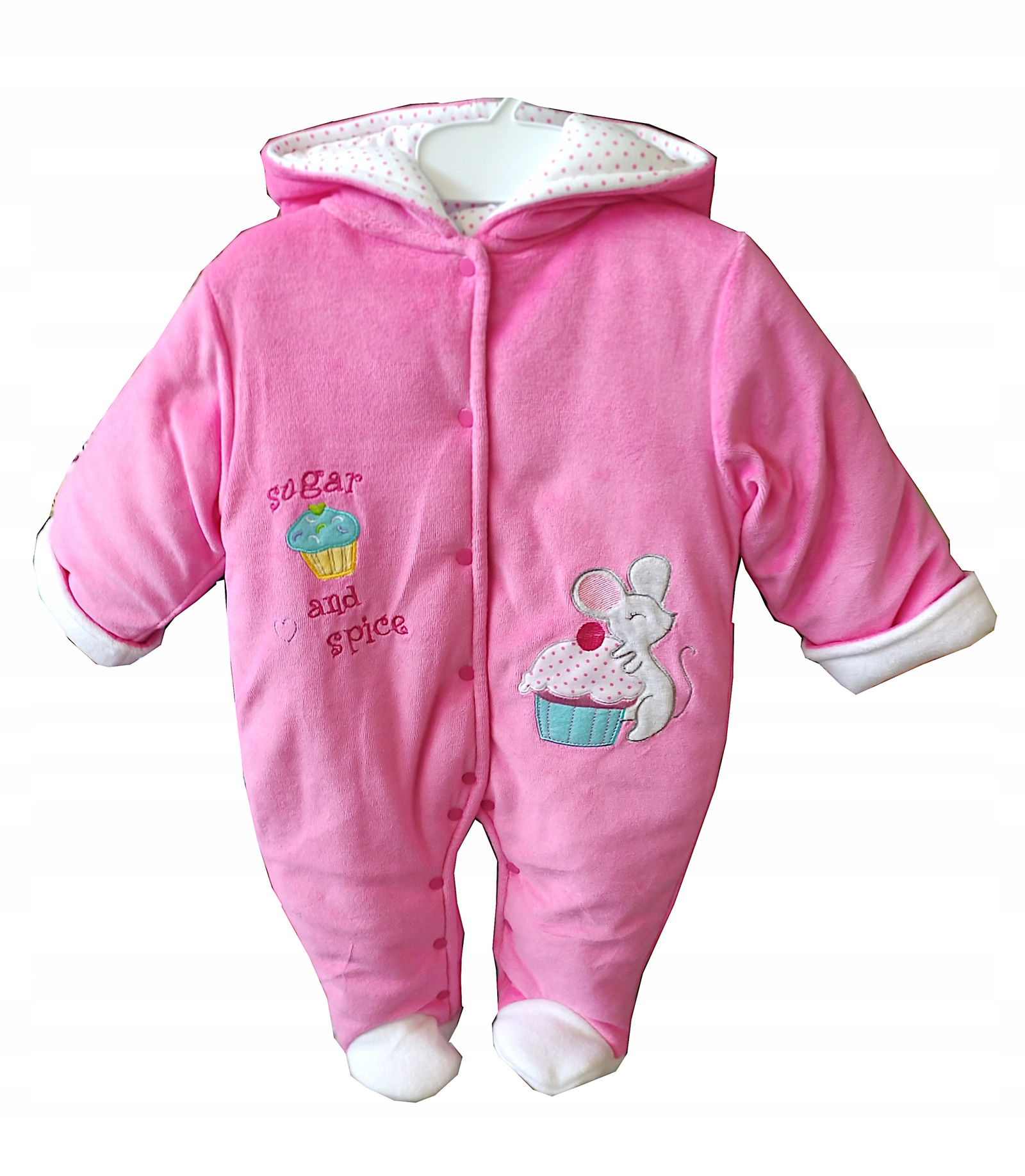 Pajac rozpinany po całej długości na napy. Posiada kaptur.