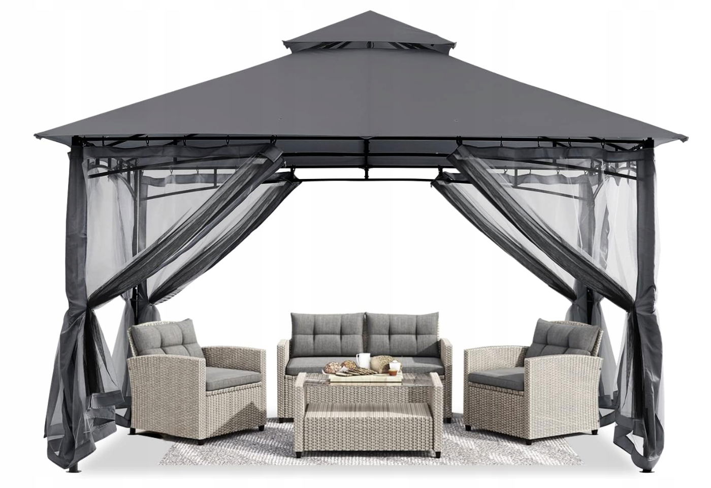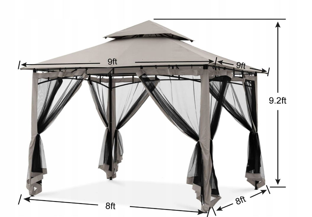 - ✴️ [Duży obszar zacienienia]: ① Ten pawilon tarasowy do użytku na zewnątrz ma wymiary 2,5 m (dł.) x 2,5 m (szer.) x 2,8 m (wys.) i zapewnia pokrycie powierzchni 25 m². Wystarczająco wygodna dla 4-6 osób. ② Zaleca się umieszczenie 2 sof dwuosobowych + 2 pojedynczych sof. Przed zakupem należy zmierzyć rozmiar platformy i wymiary mebli.