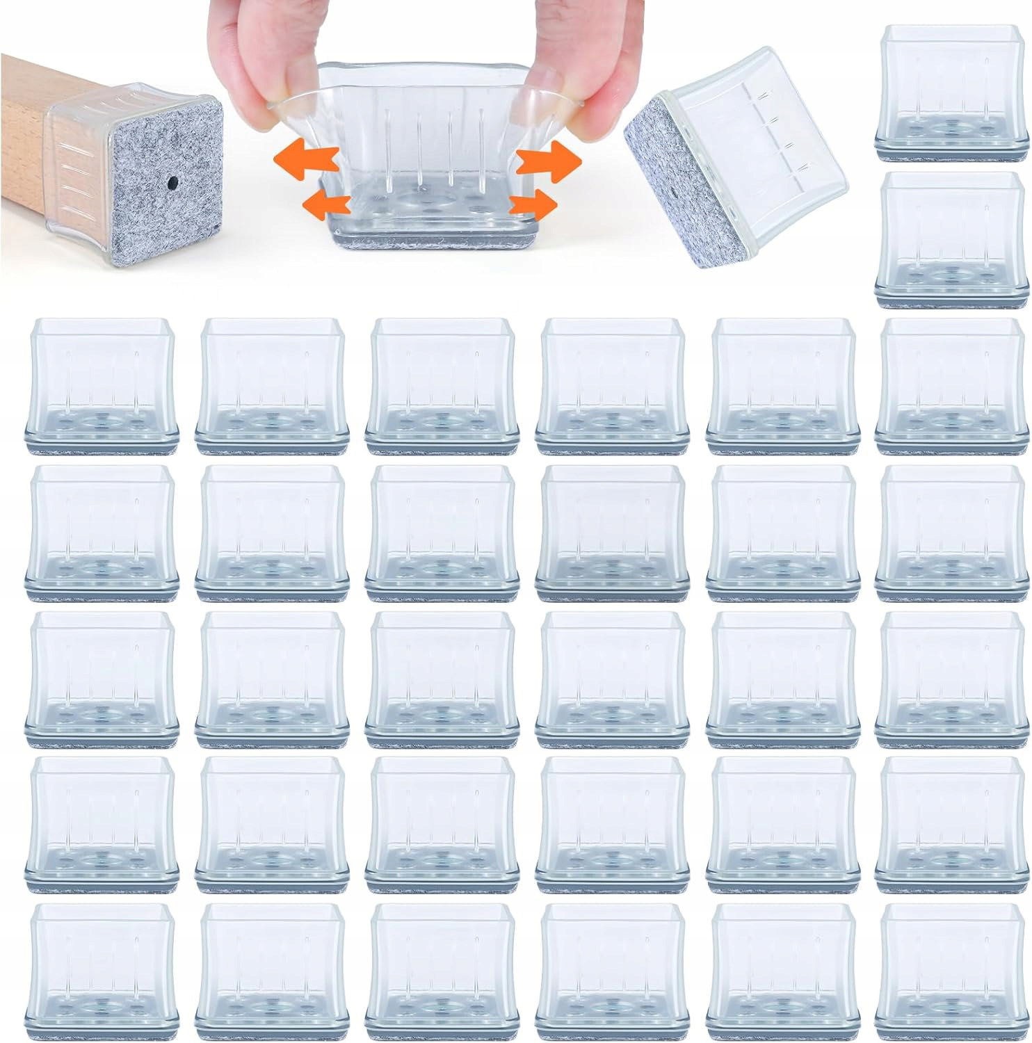 ABNEER Nakładka silikonowa na nogę krzesła | Kwadratowa 24–29 mm | 1 szt. | Filc + metalowa uszczelka