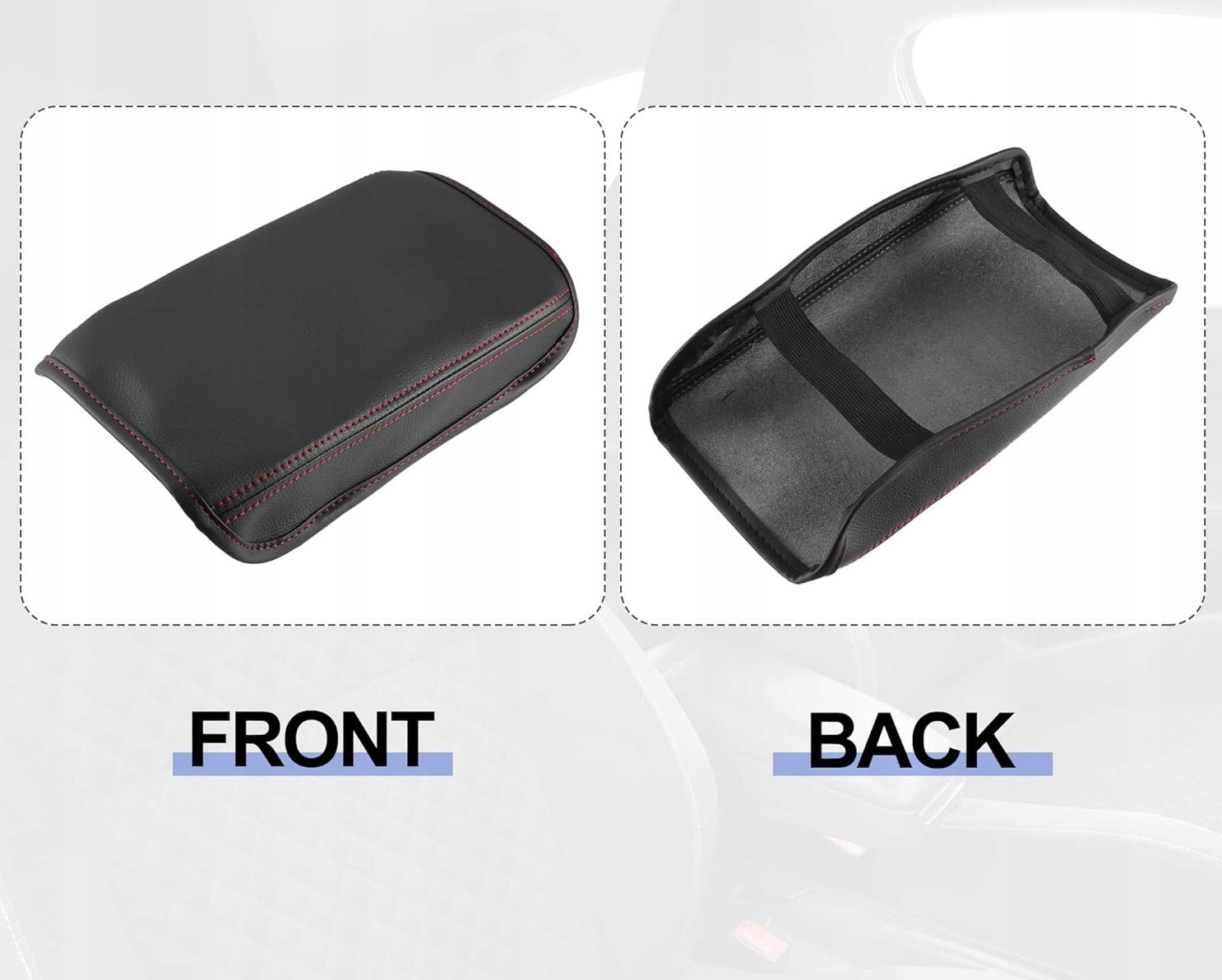 - Stylowy Wygląd: Czarna sztuczna skóra z kontrastowymi czerwonymi szwami nadaje wnętrzu samochodu sportowy i elegancki akcent.