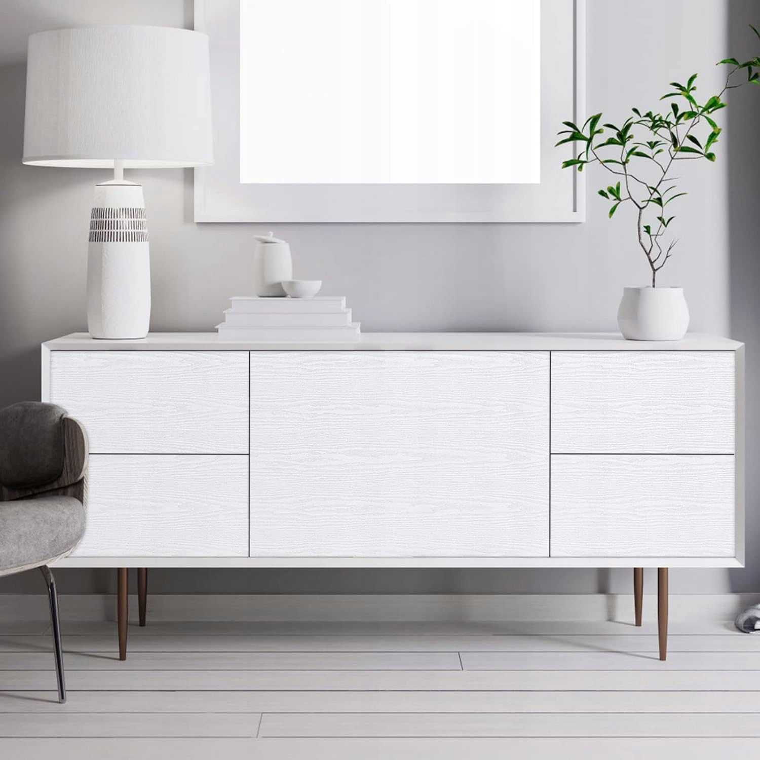 Folia doskonale zakrywa oryginalną powierzchnię mebli, blatów czy stołów, chroniąc je przed zarysowaniami, wilgocią i zabrudzeniami, jednocześnie nadając im estetyczny, modny efekt białego drewna.