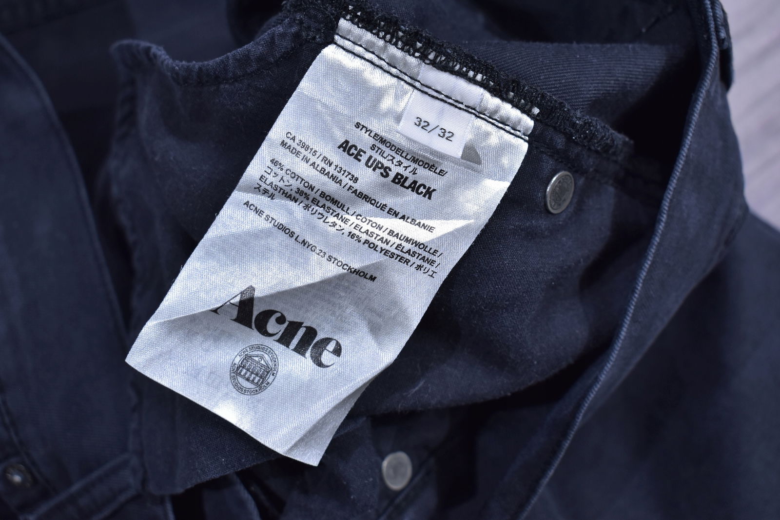 ACNE STUDIOS Ace Ups Black Jeansy Męskie W32 L32