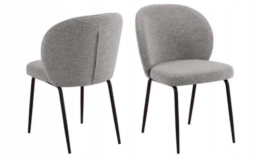 Krzesło Patricia tapicerowane szare prezentuje się niezwykle lekko i subtelnie, a jednocześnie wnosi do wnętrza powiew świeżości. Jasnoszara tkanina o delikatnej fakturze świetnie komponuje się z czarną, metalową podstawą, podkreślając nowoczesny i skandynawski charakter aranżacji. To doskonały wybór zarówno do minimalistycznych, jak i bardziej przytulnych przestrzeni, gdzie liczy się ponadczasowy design oraz wygoda użytkowania.
