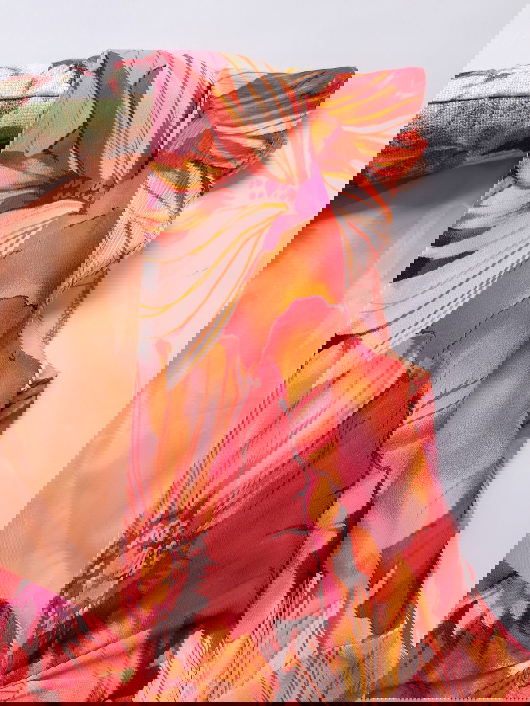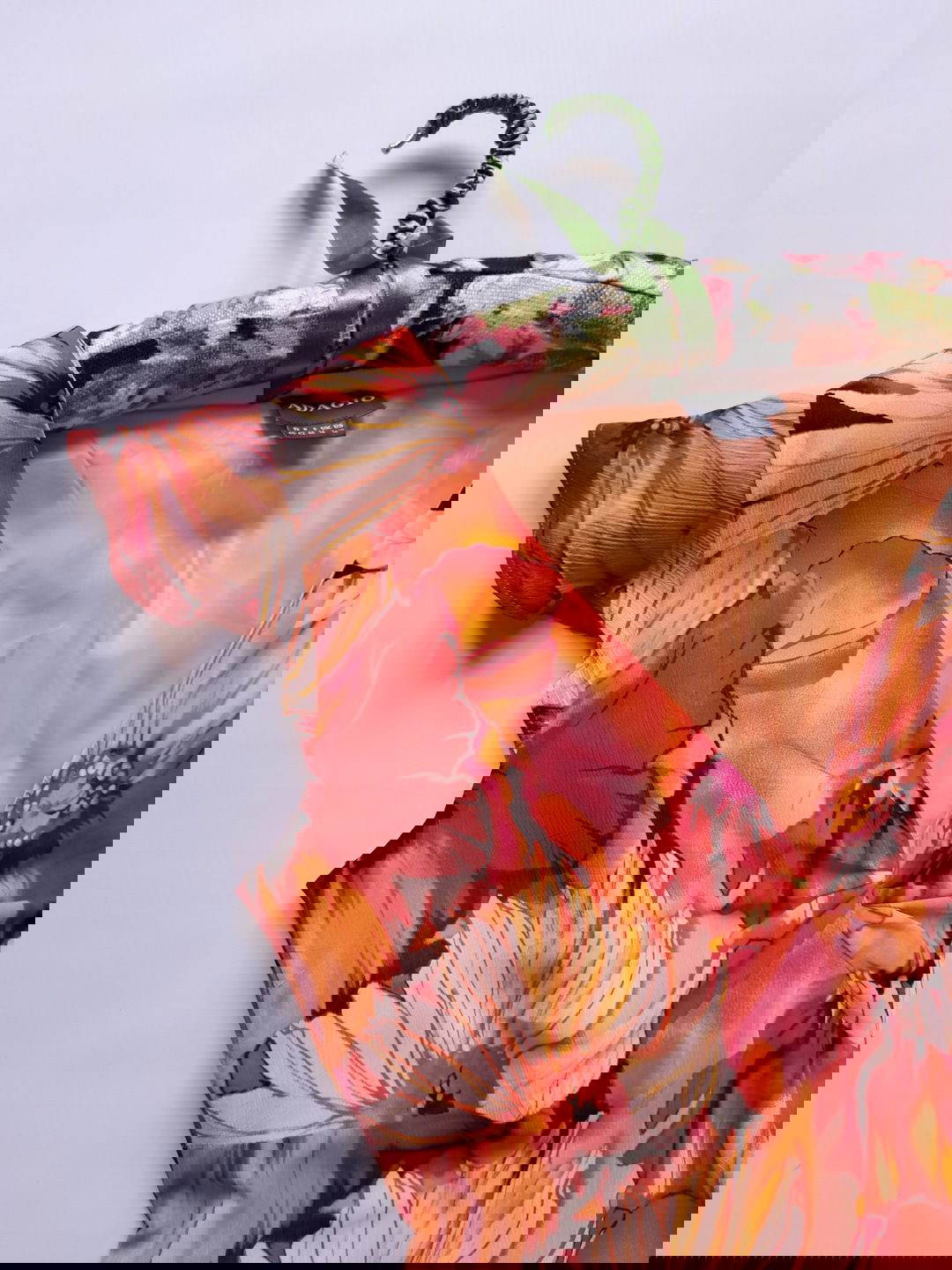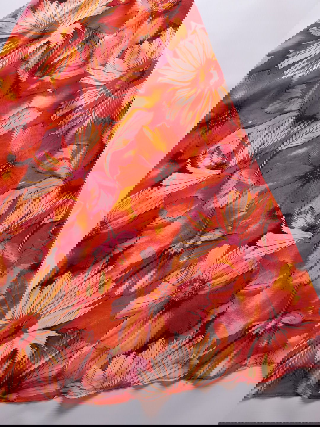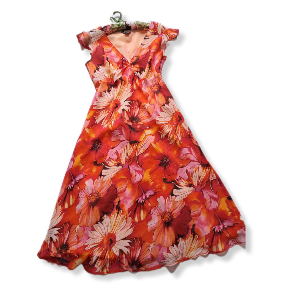 ADAGIO trapezowa delikatna sukienka midi duże pomarańczowe kwiaty S