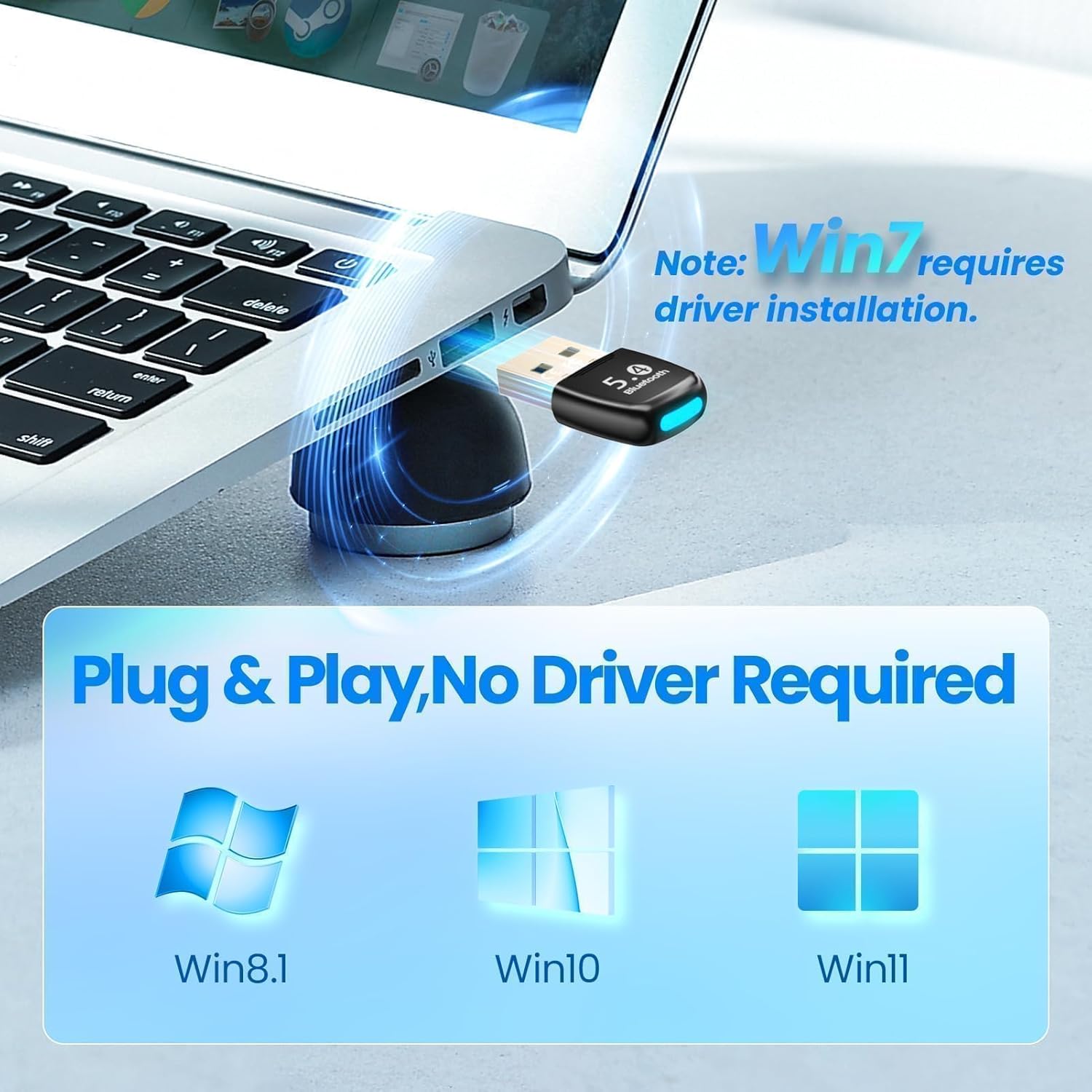 - Plug and play: Adapter Bluetooth USB obsługuje pracę bez sterowników w systemach Windows 8.1/10/11 – wystarczy podłączyć i połączyć. W systemie Windows 7 wymagana jest instalacja sterownika. Adapter Bluetooth jest przeznaczony dla systemu Windows i nie obsługuje innych systemów.