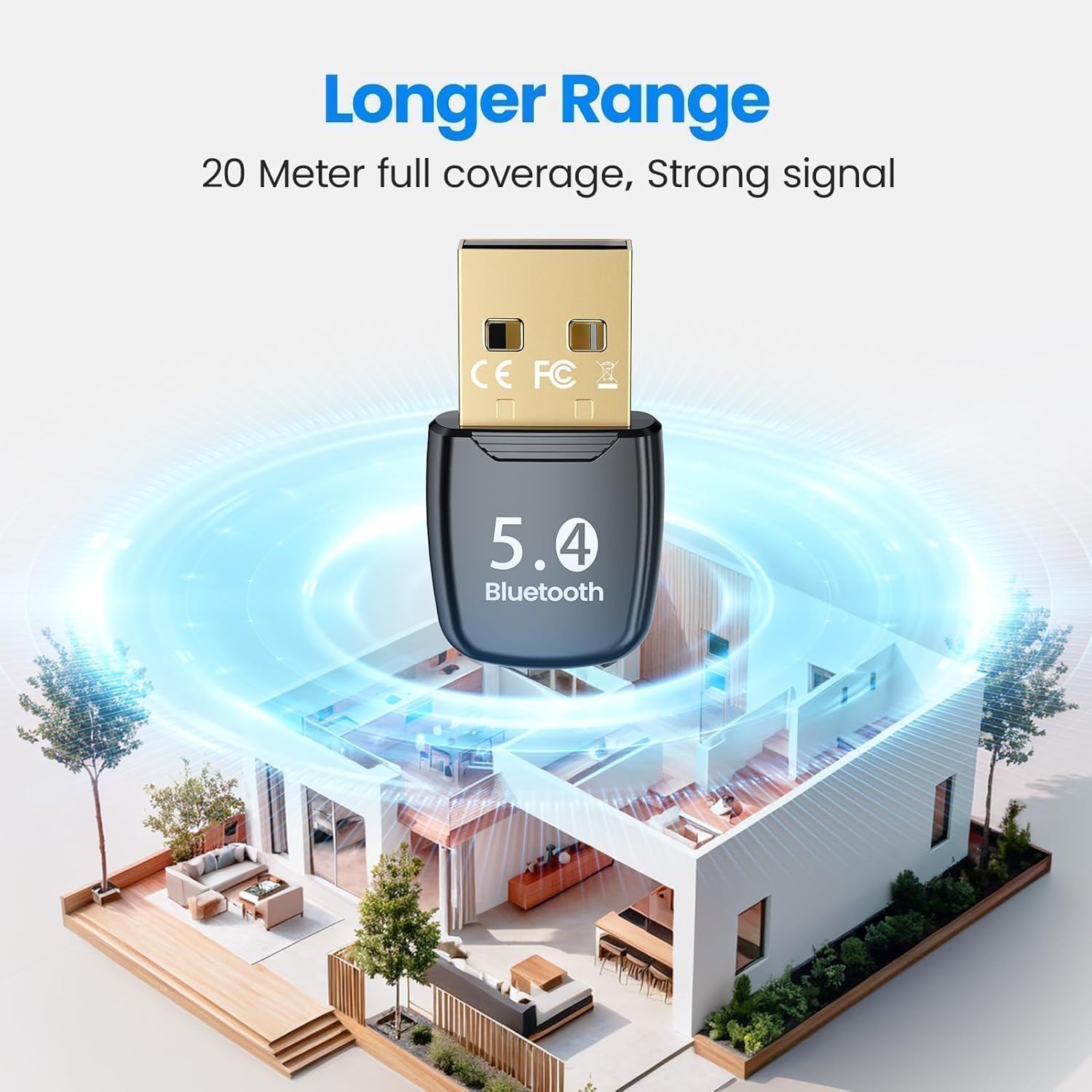 - Adapter w wersji 5.4, mocny zasięg: adapter Bluetooth ma wydajny układ 5.4, przepustowość 3 Mb/s i wyższą prędkość transmisji, kompatybilny z Bluetooth 2.1/3.0/4.0/4.2/5.0/5.1/5.3. Niższe opóźnienia, niskie zużycie energii, silne zabezpieczenie przed zakłóceniami. Pełny zasięg 20 metrów, silny sygnał.