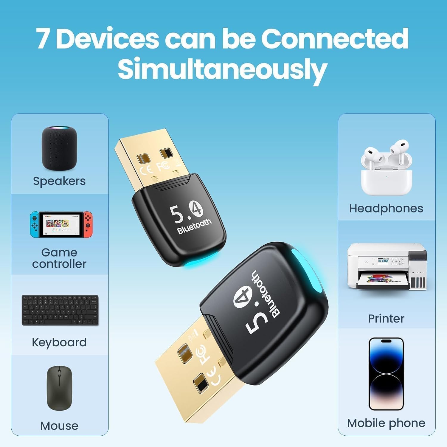 Adapter Bluetooth NEUTYPECHIC 5.4, klucz sprzętowy Bluetooth USB dla systemów Windows 8.1/10/11, Plug & Play, umożliwia jednoczesne podłączenie do 7 urządzeń