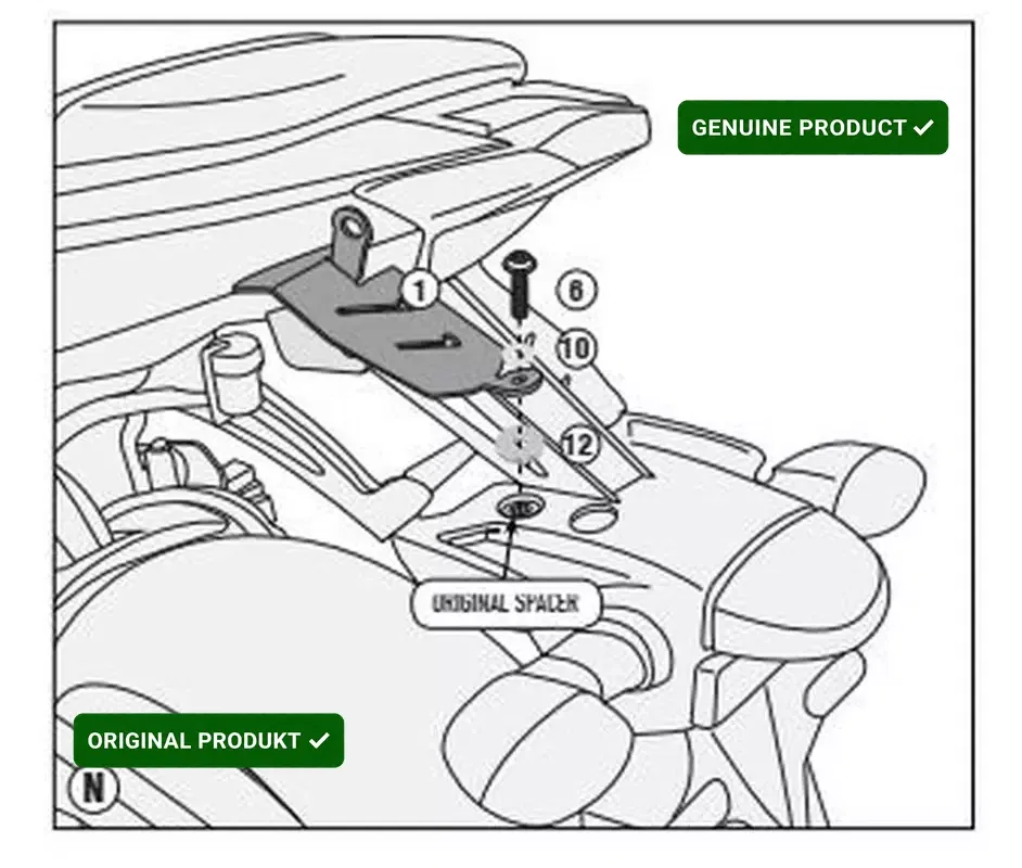 - Adapter do prawidłowego dopasowania. pozwala zamontować stelaż pod kufry boczne