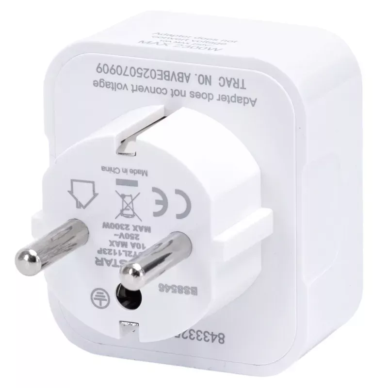 Uniwersalny Adapter Wtyczki UE jest odpowiedzią na wszystkie Twoje potrzeby! Ten niezbędny towarzysz podróży przekształca różne wtyczki z całego świata (UK, USA/Japonia, Australia/Chiny, Włochy, Szwajcaria, Brazylia i inne) w standardową europejską wtyczkę zasilania z 2 stykami.