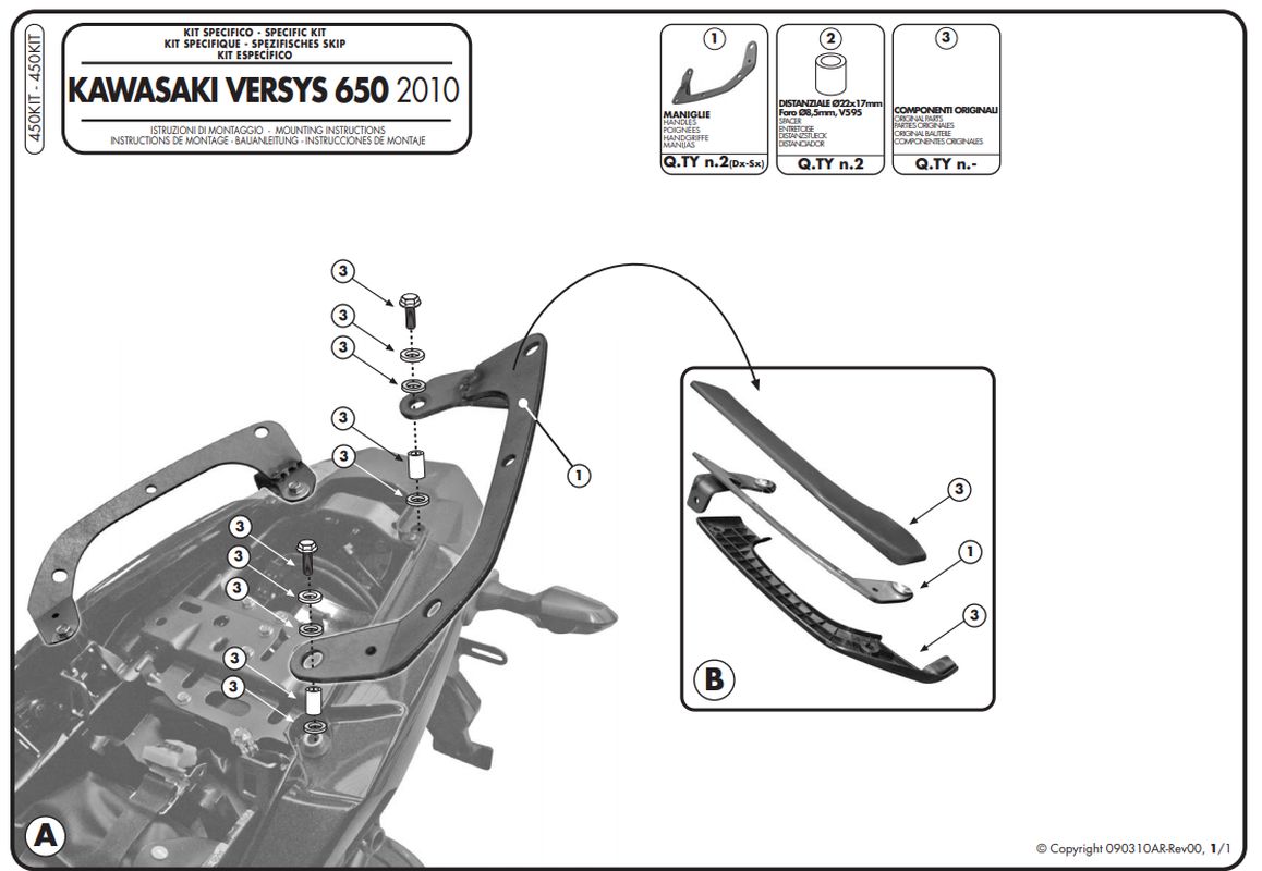 Zasady bezpieczeńśtwa i użytkowania:Adapter do zamontowania stelaża bocznego KLR450 oraz KLXR450 BEZ UŻYCIA STELAŻA CENTRALNEGO KAPPA kod ean 8029871081484