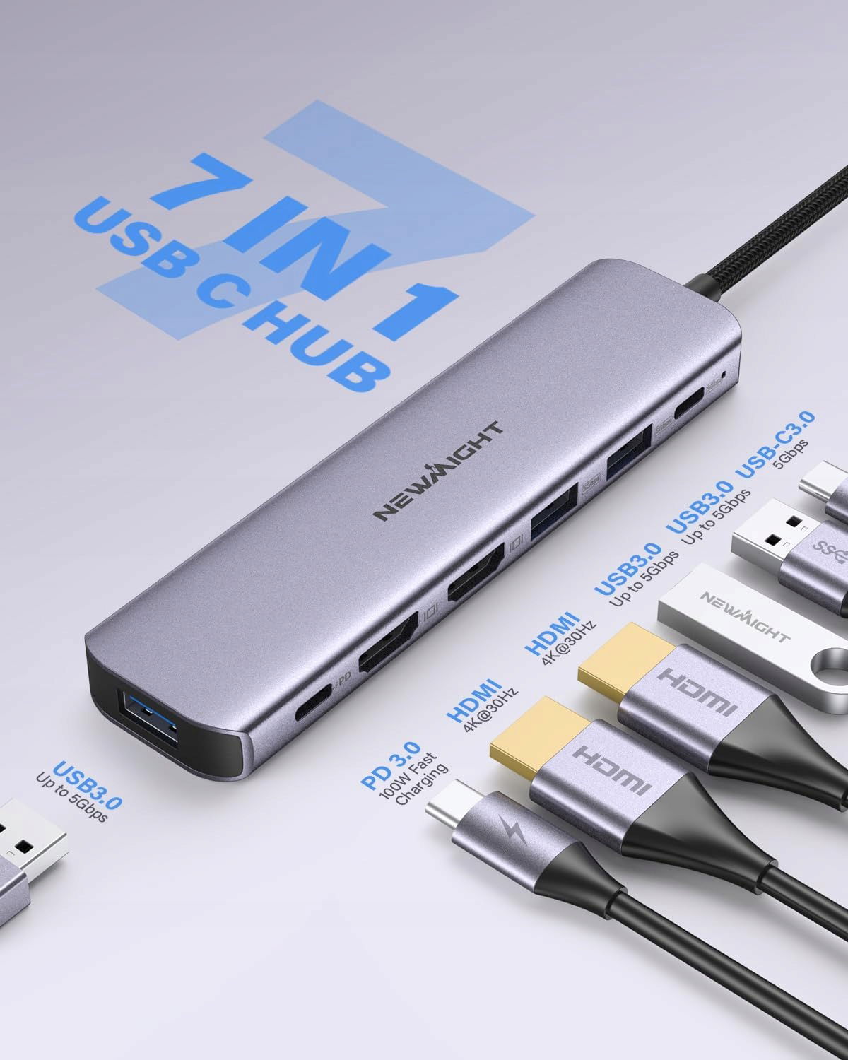 Adapter USB C na podwójny HD stacja dokująca Newmight 7 w 1 USB C 100W HUB