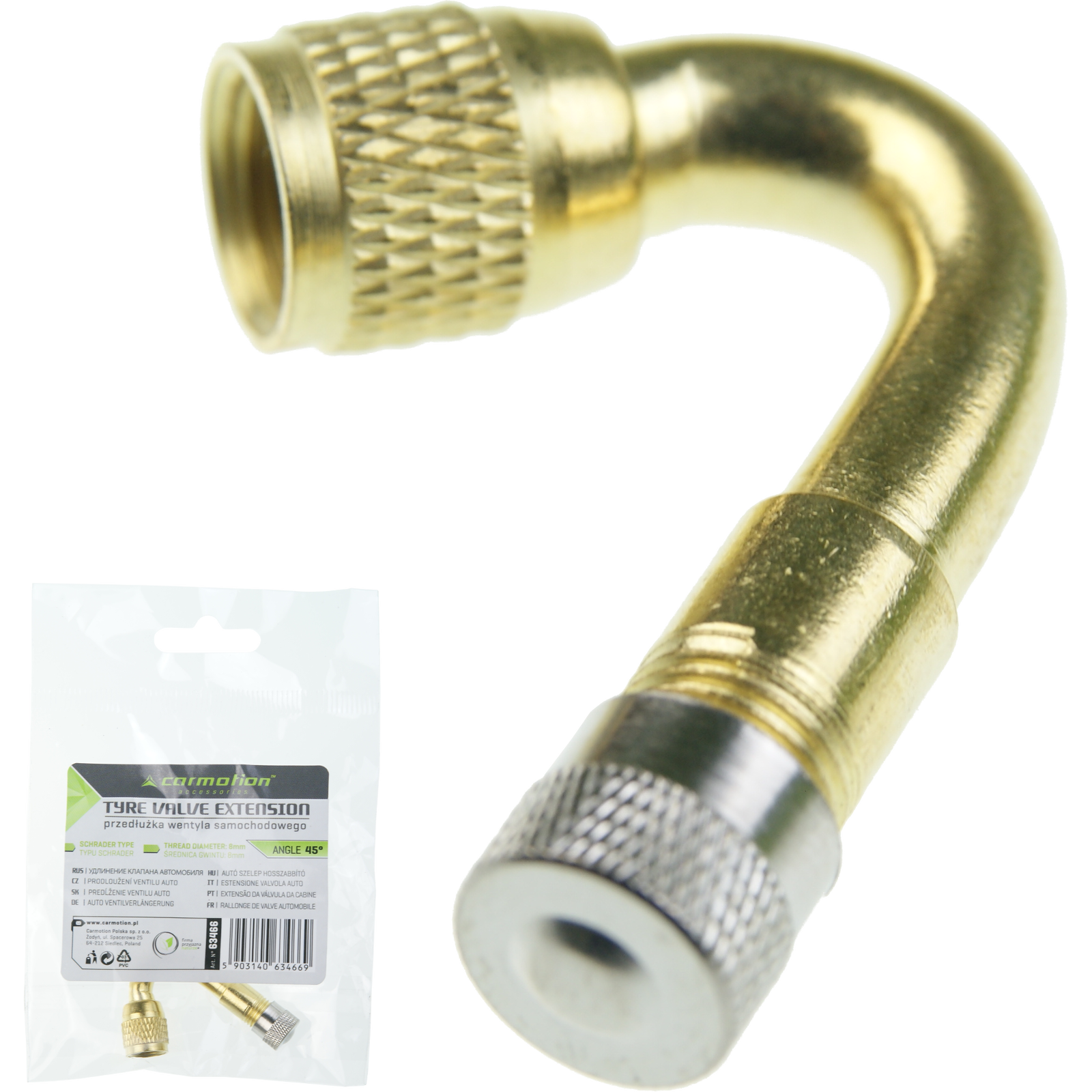 Adapter do wentyli samochodowych (AV) na samochodowe (AV45) gięty