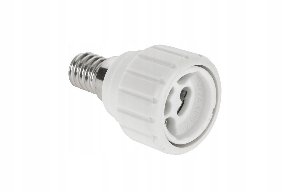 Adapter pozwala na podłączenie żarówki z wtykiem GU10 do gniazda wkręcanego E14 (to mniejsze).