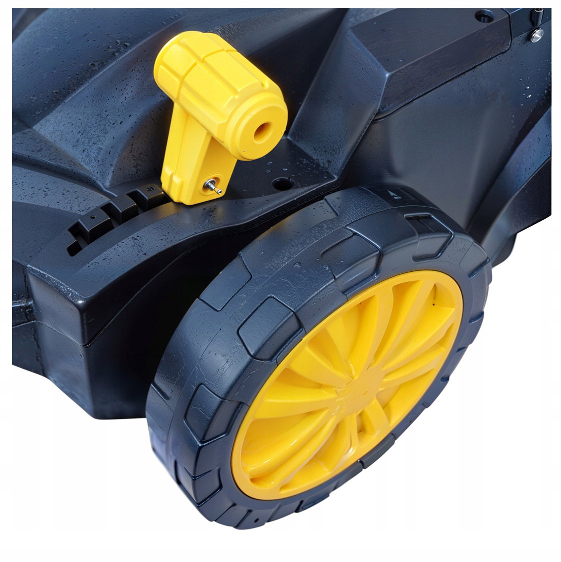 Dzięki dużym tylnym kołom (180 mm) i mniejszym przednim (100 mm), aerator jest łatwy w manewrowaniu. Dodatkowo, jego lekka konstrukcja (9,3 kg) ułatwia przechowywanie i transport.