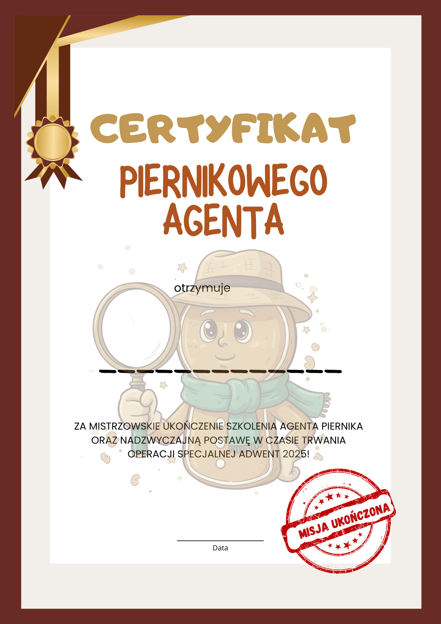 Kalendarz Adwentowy AGENTA PIERNIKA! Misje, Zagadki, Certyfikat (PDF A4)