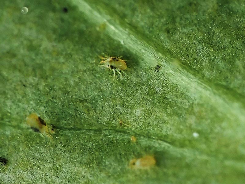 Wygląd szkodnika: Pordzewiacze jabłoniowe to roślinożerne roztocza. Są bardzo małe – 0,16 mm, więc nie widoczne gołym okiem. Pod dużym powiększeniem możemy zauważyć, że są koloru beżowego.