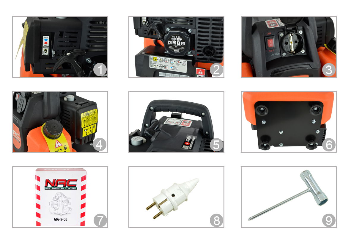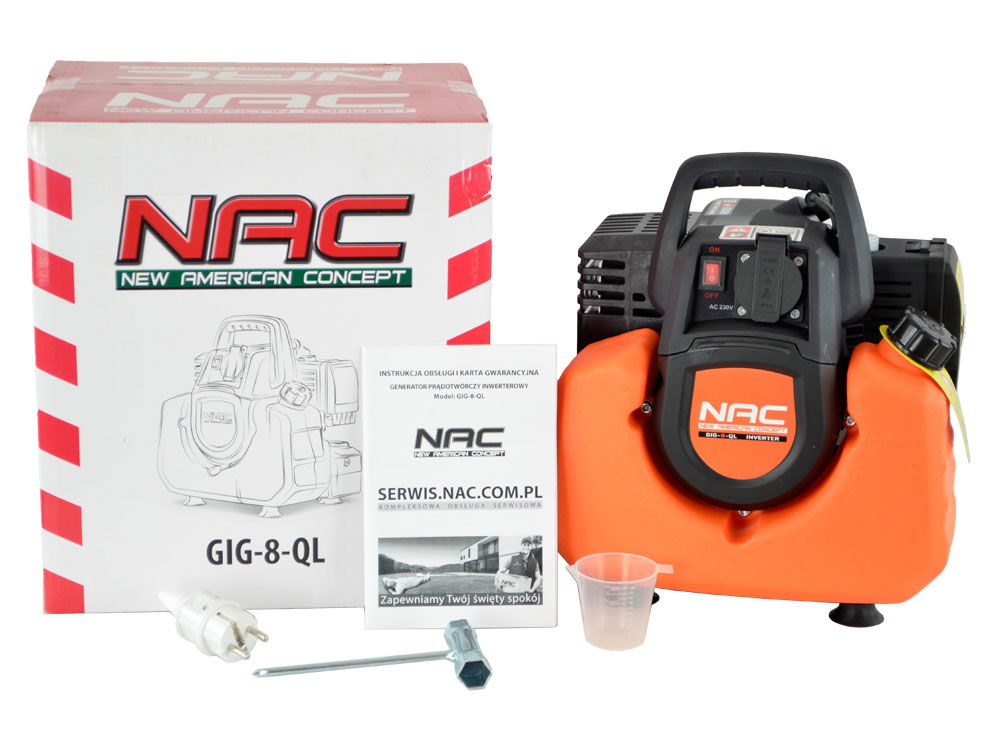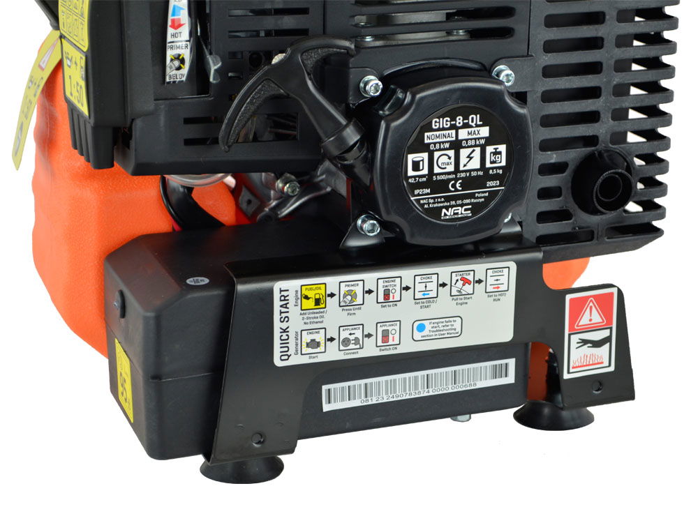 Przenośny generator prądotwórczy jednofazowy NAC GIG-8-QL o maksymalnej mocy 880 W przeznaczony jest do generowania prądu zmiennego 230 V