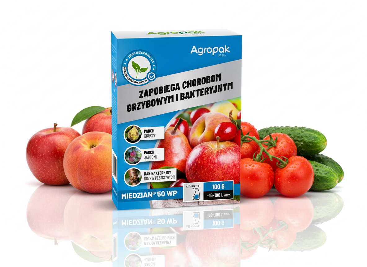 AGROPAK MIEDZIAN 50 WP ŚRODEK NA CHOROBY ZARAZĘ BRZOSKWINI JABŁONI POMIDORÓW