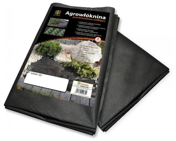 AWB5016005Agrowłóknina 50 czarna, 1,6 x 5m Agrowłóknina antychwastowa - czarna, gramatura 50g/m². Mocna, trwała i odporna na promieniowanie UV z tworzywa PP. Dzięki swoim właściwościom znajduje szerokie zastosowanie w ogrodnictwie, szkółkarstwie i rolnictwie do ściółkowania. Zalety i właściwości: - zapobiega wzrostowi chwastów - utrzymuje odpowiednią wilgotność i ciepło gleby - stworzone dobre warunki dla roślin powodują lepszą jakość plonów EAN: 5907544400905Służy do tworzenia ściółek przeciwchwastowych • Bardzo trwała oraz uniwersalna • Utrzymuje odpowiednią wilgotność gleby • Ogrzewa glebę co znacznie przyspiesza wzrost roślin • Tkanina jest mocna i odporna na rozrywanie • Idealna do uprawy szklarniowej kwiatów, warzyw, owoców • Chroni przed szkodnikami • Stwarza dobre warunki dla roślin powodując lepszą jakość plonów • Chroni korzenie roślin przed wiosennymi przymrozkami oraz niekorzystnymi warunkami atmosferycznymi • Tworzy odpowiedni mikroklimat • Zapobiega wzrostowi chwastów • Niweluje dobowe wahania temperatury w ciągu dnia i nocy
