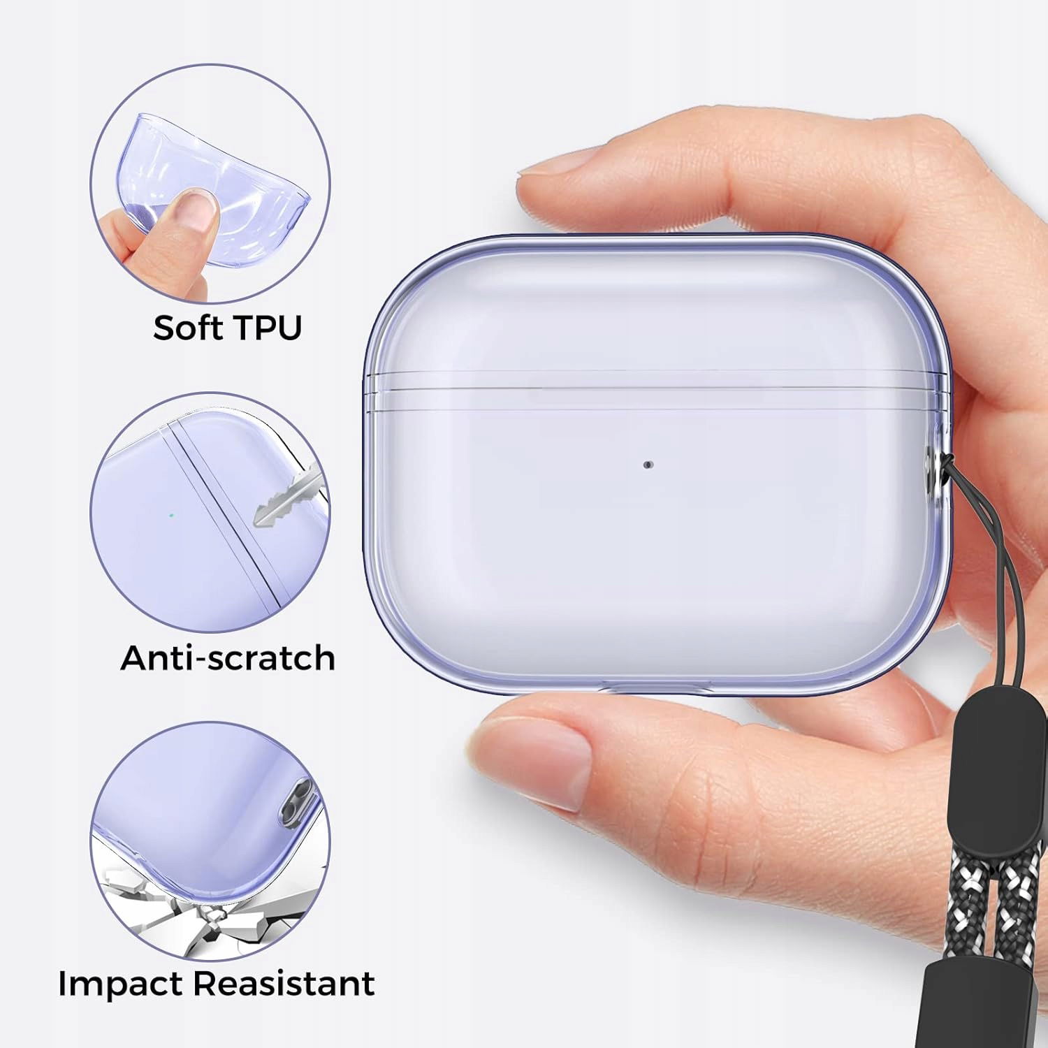 AHASTYLE WG94 – Przezroczyste etui TPU z paskiem na rękę do Apple AirPods Pro 2✨