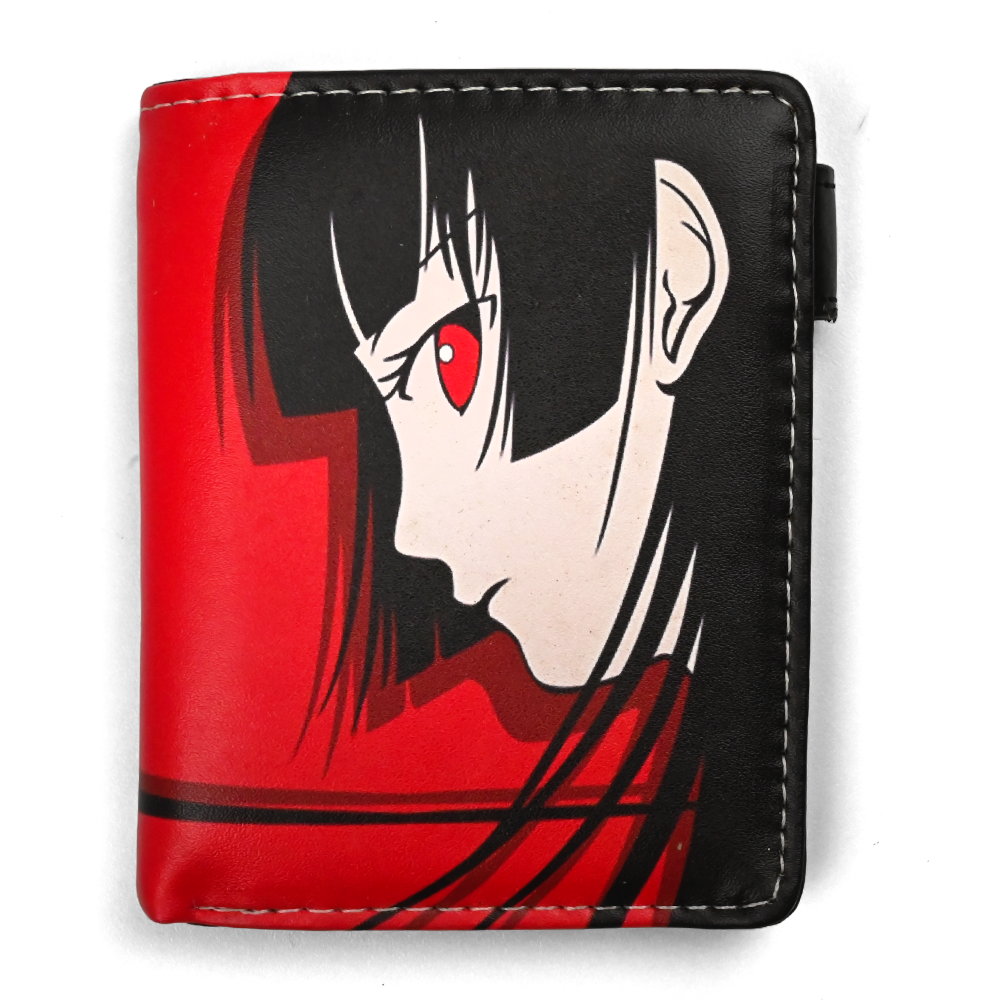 Na froncie znajduje się profil Ai Enmy z intensywnie czerwonym okiem i charakterystycznymi czarnymi włosami, na tle nasyconej czerwieni – motywu przewodniego serii. Tył portfela zdobi czarna japońska kaligrafia, nadająca całości autentycznego charakteru i bezpośrednio nawiązująca do oprawy wizualnej anime. Ten portfel to nie tylko praktyczny dodatek, ale również odważny element kolekcji, oddający hołd jednej z najbardziej tajemniczych postaci w świecie anime. Niezależnie czy chcesz poszerzyć swoją kolekcję czy szukasz unikalnego Hell Girl merchandise – ten Ai Enma collectible łączy styl, symbolikę i opowieść w jednym produkcie.
