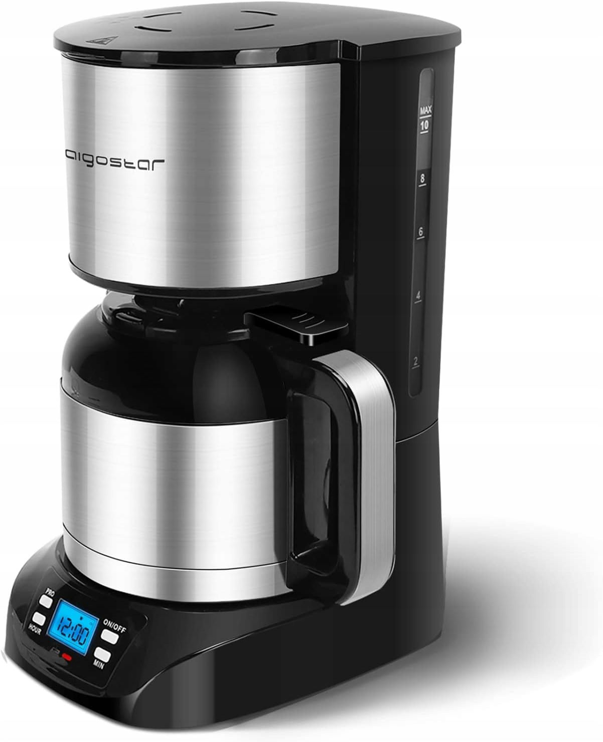 Aigostar Bonnie - Ekspres do kawy z wyjmowanym filtrem ze stali nierdzewnej. 800W, wyświetlacz LCD, Programowalny 24h, pojemność 1,2 litra