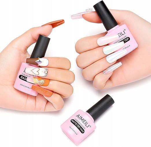 AIMEILI No Wipe Top Coat Base Coat Matte Top Coat Ulepszona formuła Lakier Bazowy Top Coat Matte Top Coat Set UV LED Soak Off Żelowy Lakier do Paznokci 3szt