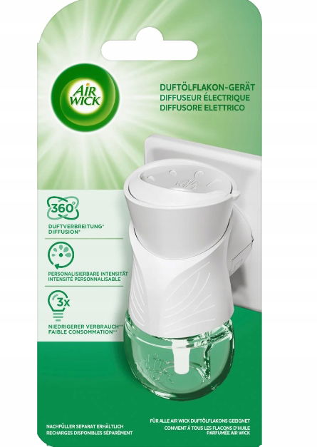 Urządzenie do rozprowadzania olejków zapachowych Air Wick pozwala na idealne rozprowadzenie zapachu w każdym zakątku pomieszczenia, przy bardzo niskim zużyciu energii