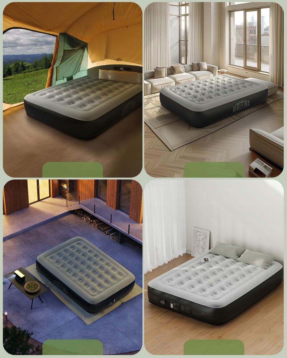 Airefina Łóżko dmuchane dla 2 osób, materac z pompką 203 x 152 x 33 cm