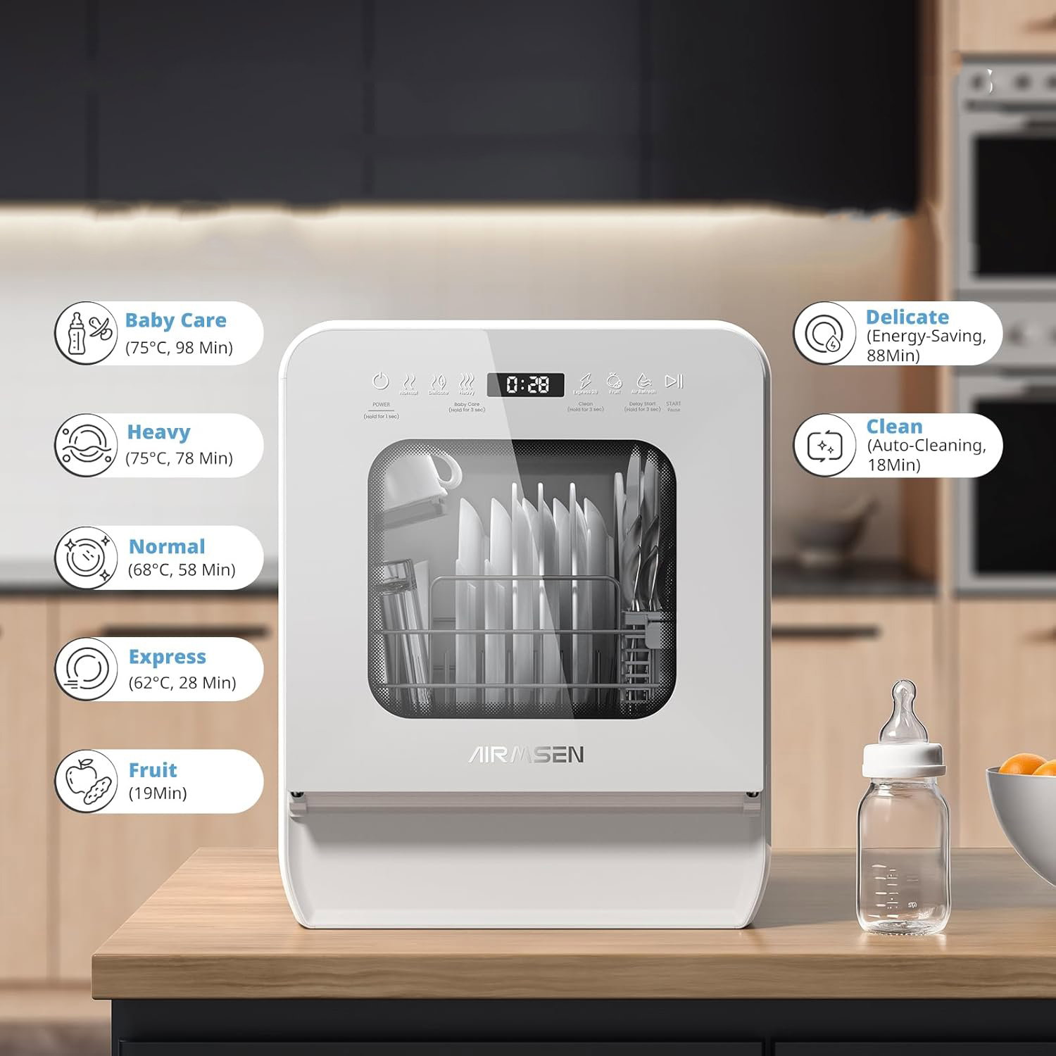 AIRMSEN 2025 NOWA Ulepszona przenośna zmywarka do naczyń 5L 9 programów