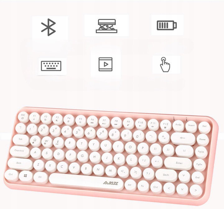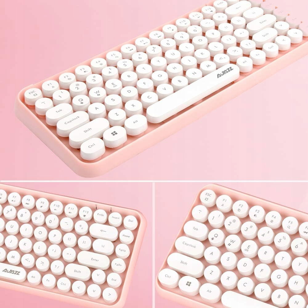 Ajazz 308I Bluetooth Bezprzewodowa Klawiatura 84 Klawisze Różowa Retro
