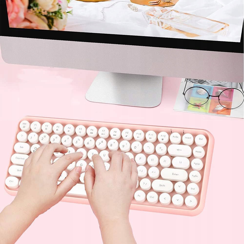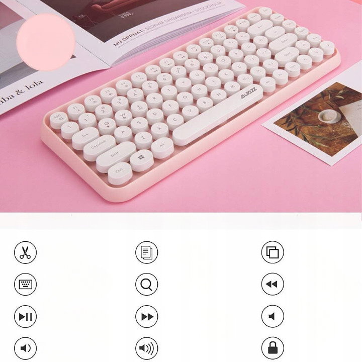 Modna i cicha konstrukcja: Bezprzewodowa klawiatura do pisania, która łączy styl retro z nowoczesnym designem, wykorzystuje technologię gładkich krawędzi i świeże kolory rozjaśnia Twoje urządzenie i cel. Kompaktowa mini klawiatura z niskoprofilowymi, cichymi klawiszami zapewniającymi wygodne i płynne pisanie.